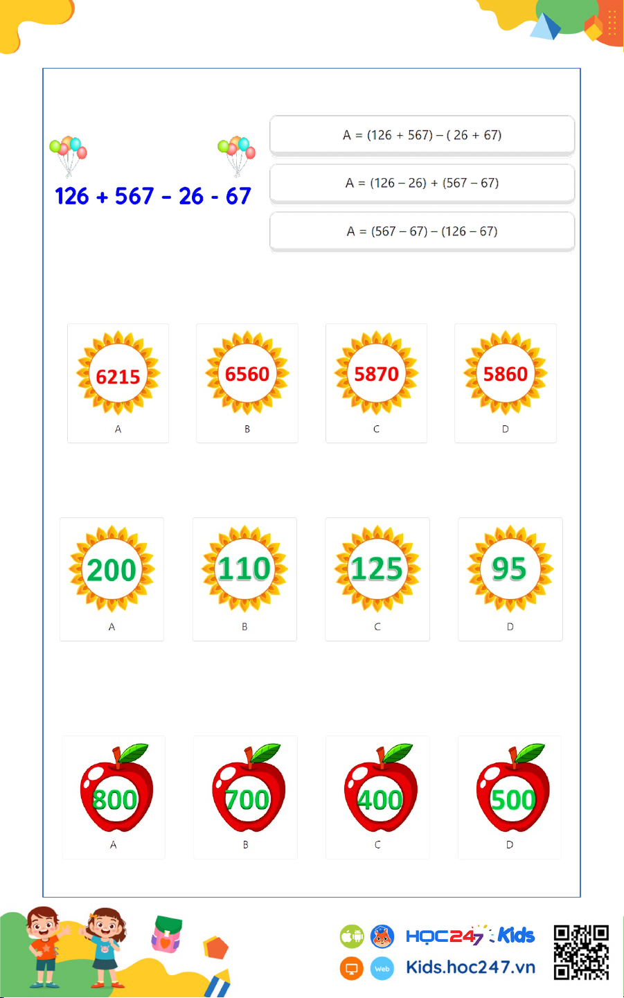 Câu 6. Giá trị của biểu thức sau là: 15 + 24 + 76 + 35 + 50 = ?