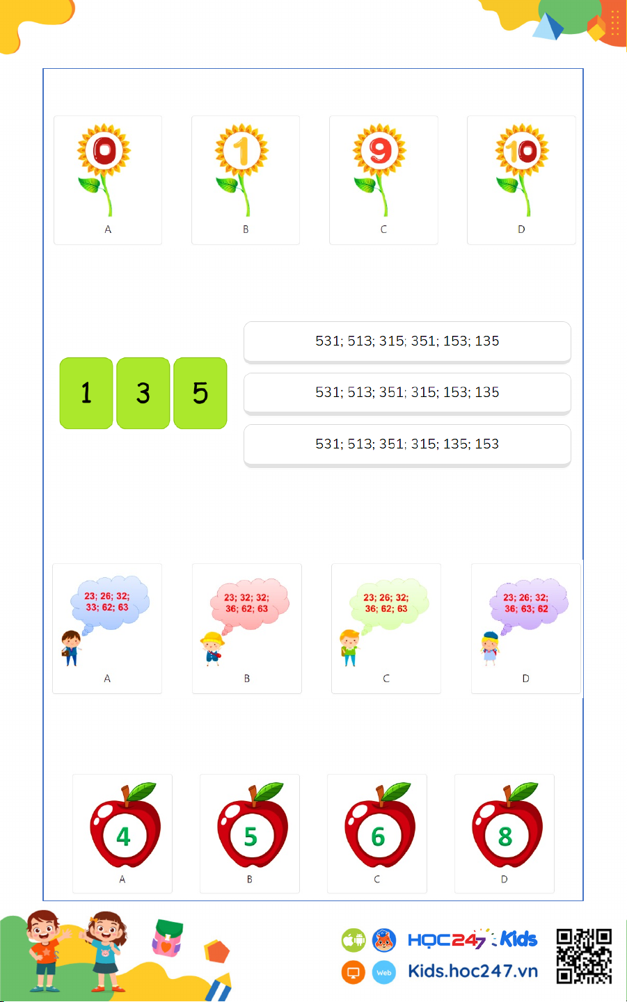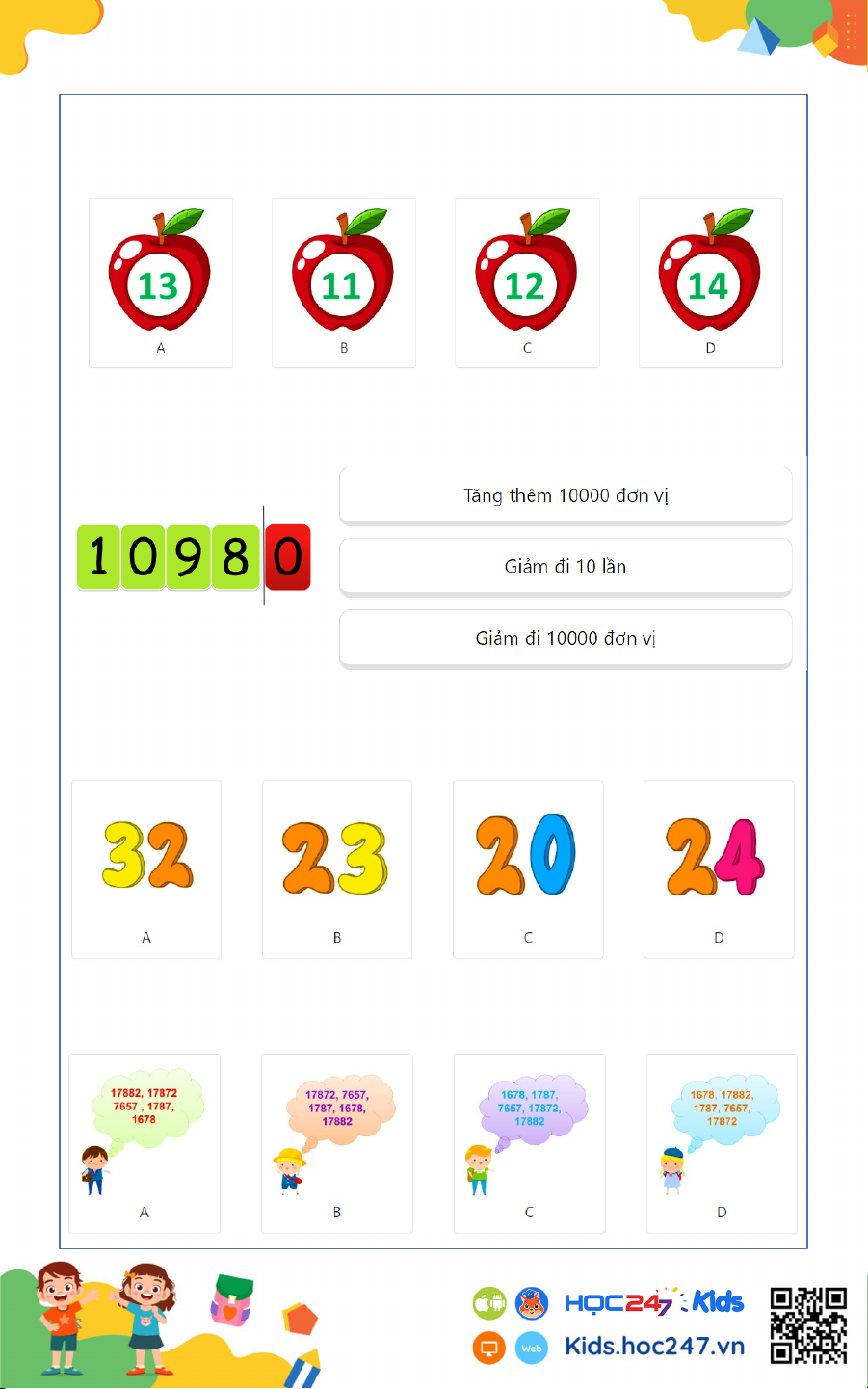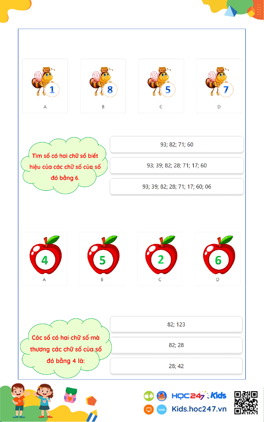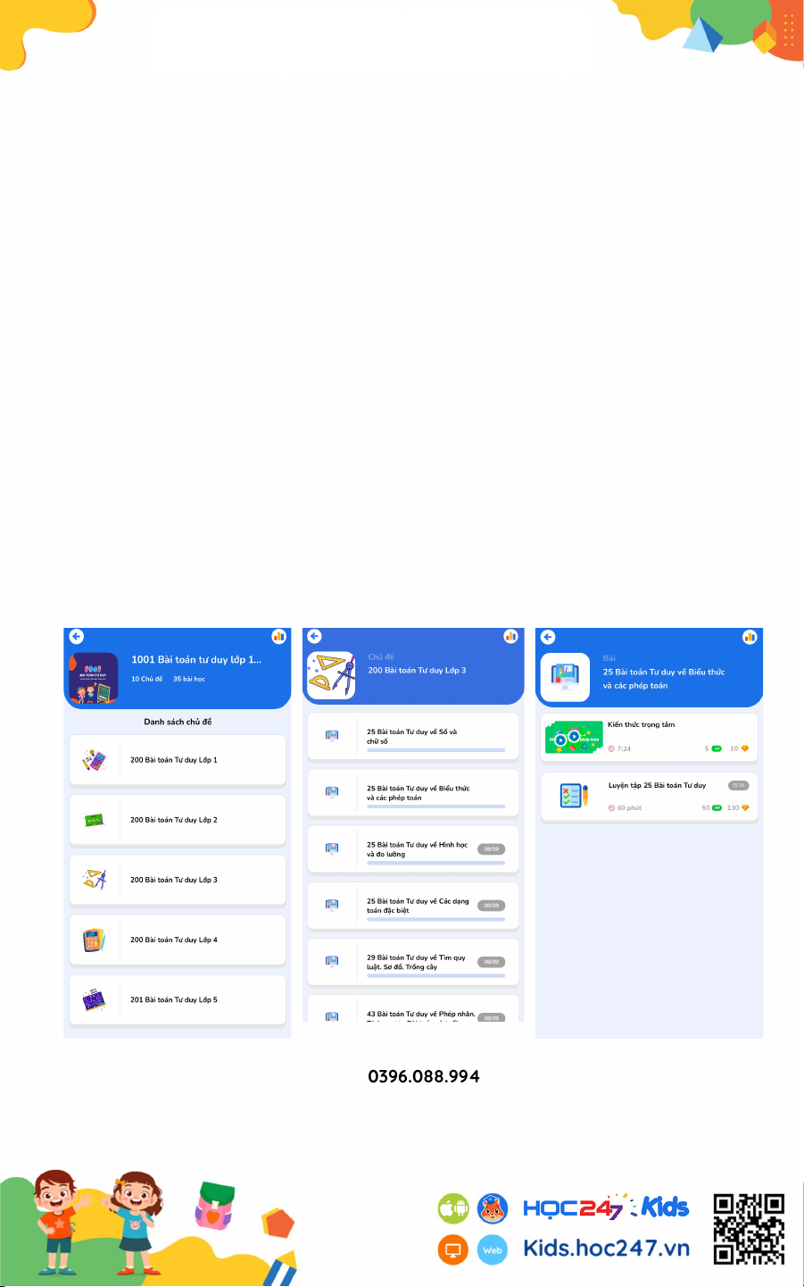 App HOC247 Kids để các em có thể làm bài online.