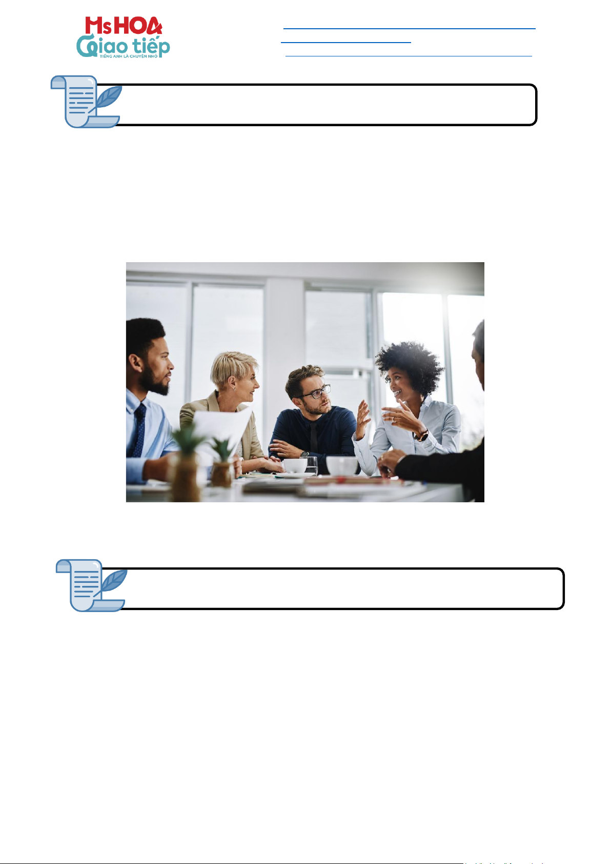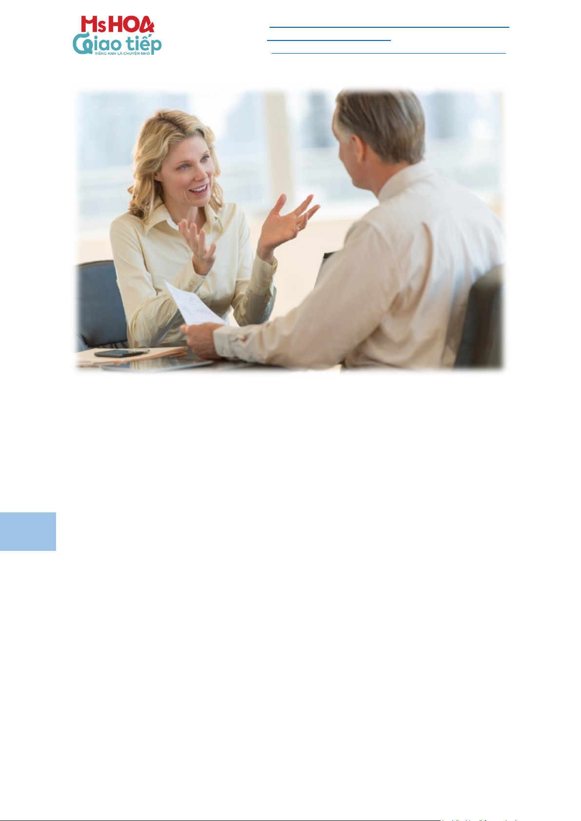 Các chủ điểm hội thoại công việc: bao gồm các mẫu hội thoại thông dụng trong công