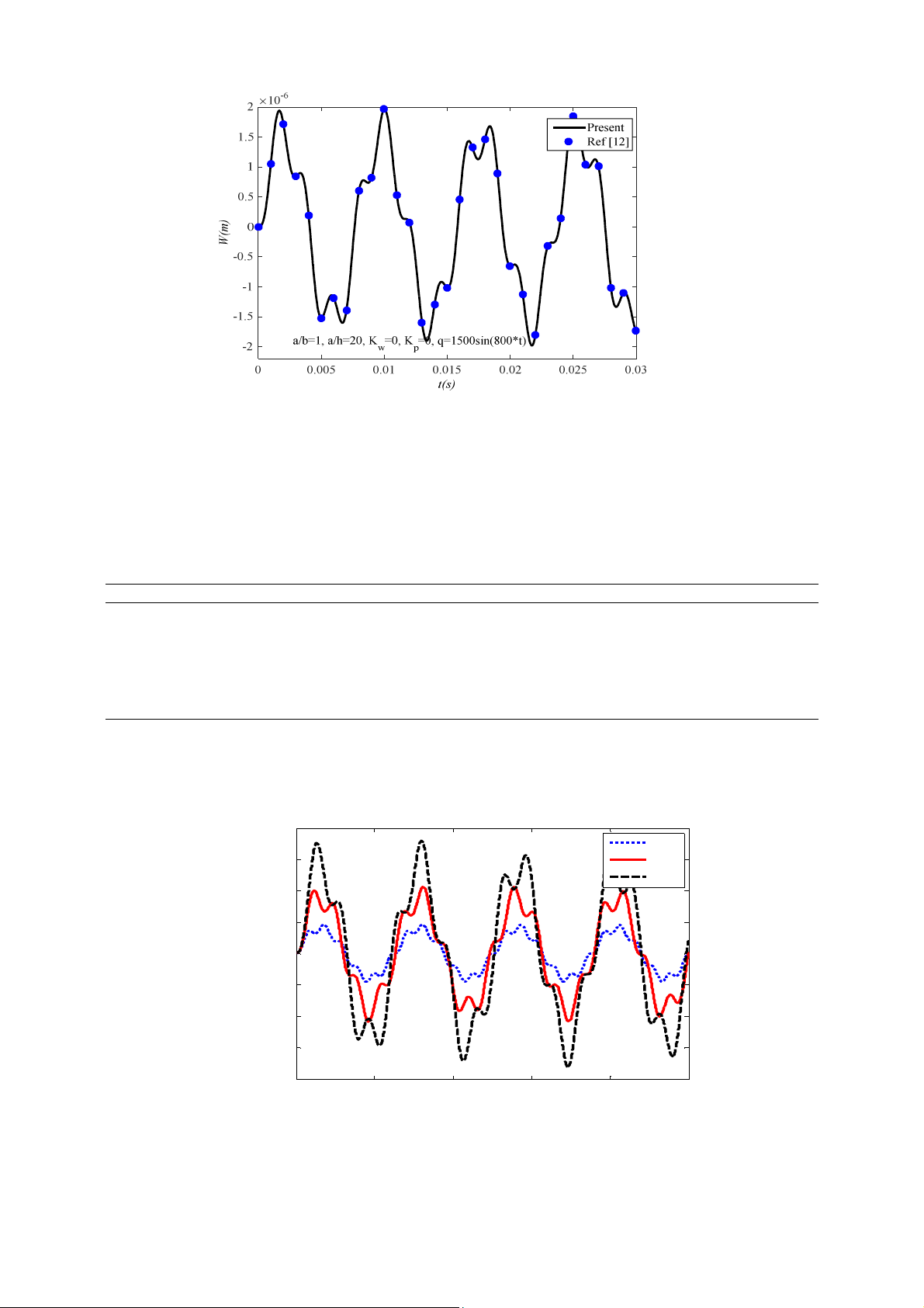 a/b=1,a/h=20,=0.1,N=1,K =0,K =0,q=1500sin(500t) -1 w p 0 0.01 0.02 0.03 0.04 0.05 t(s)