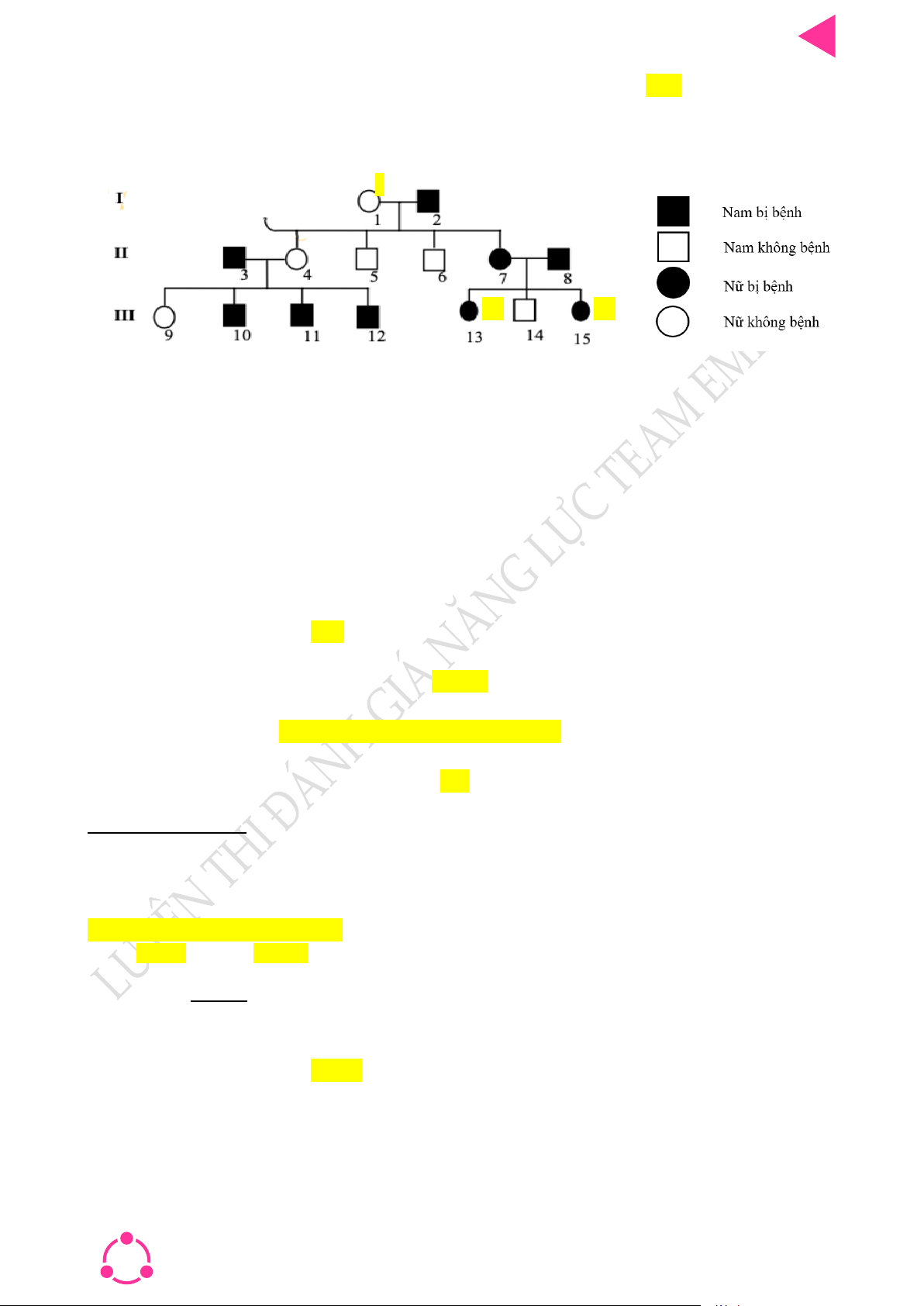 Câu 11. Phả hệ ở hình bên ghi lại sự di truyền của một bệnh ở người. Biết không xảy ra đột biến.