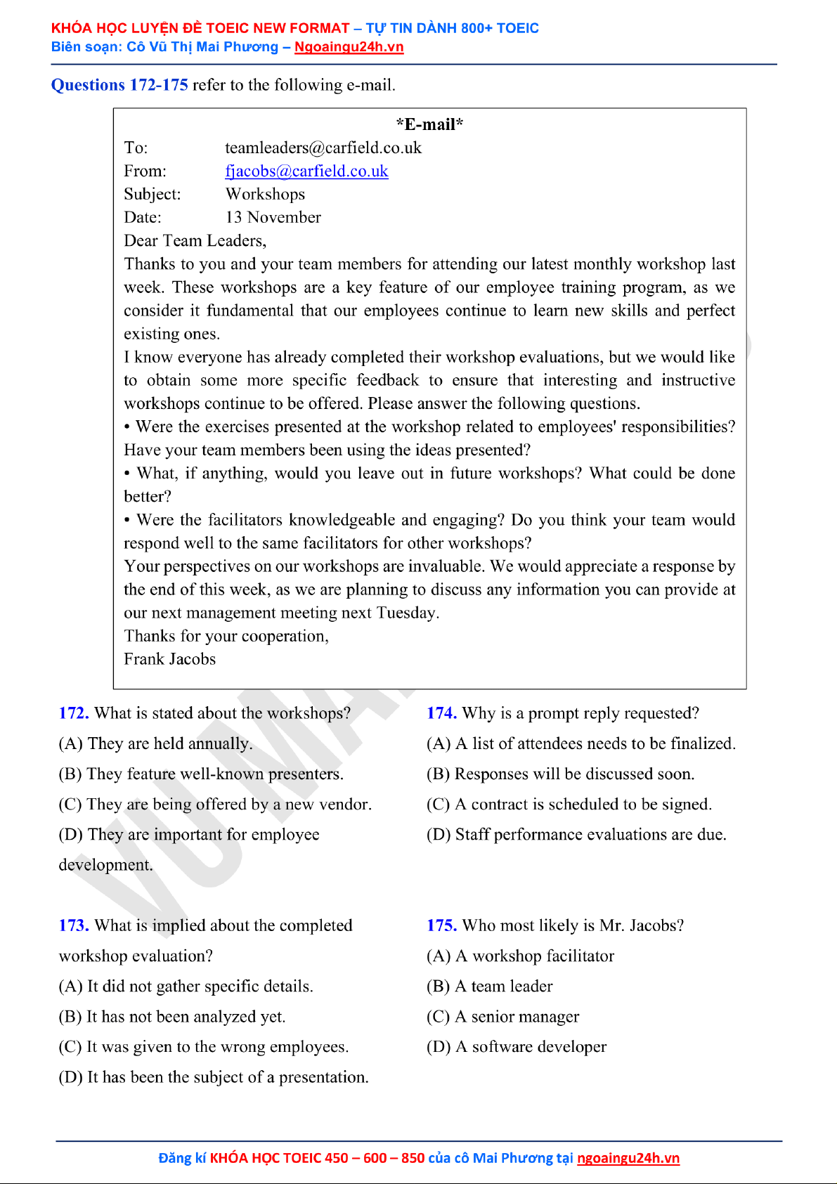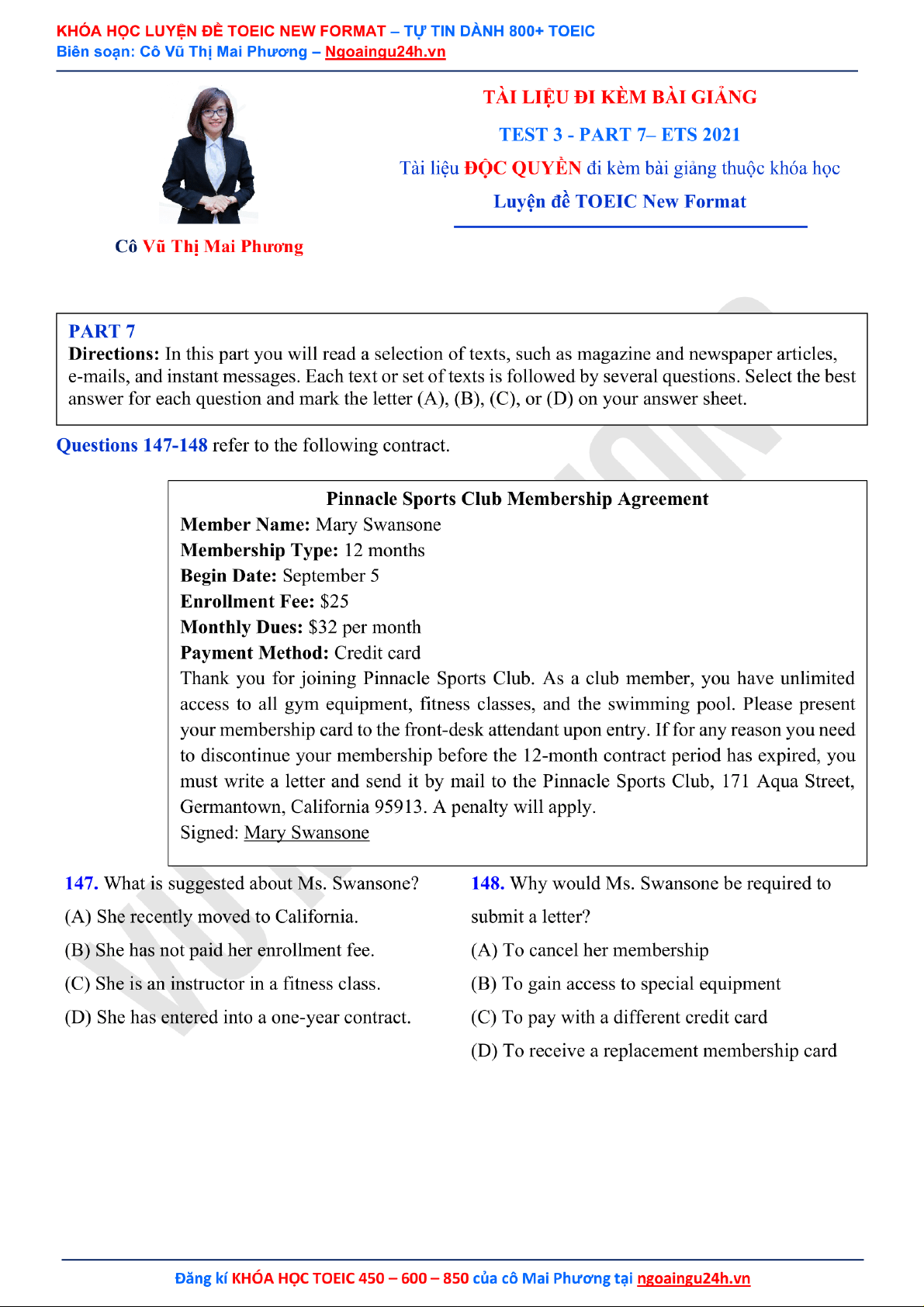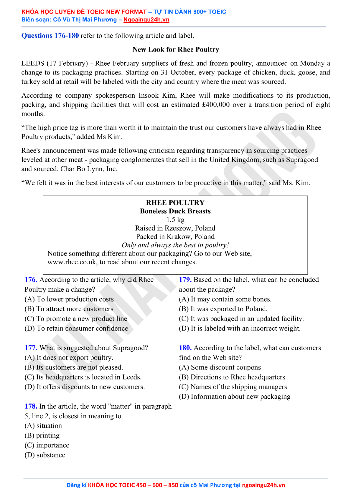 Luyện đề TOEIC new format | Tài liệu Tiếng Anh cô Mai Phương