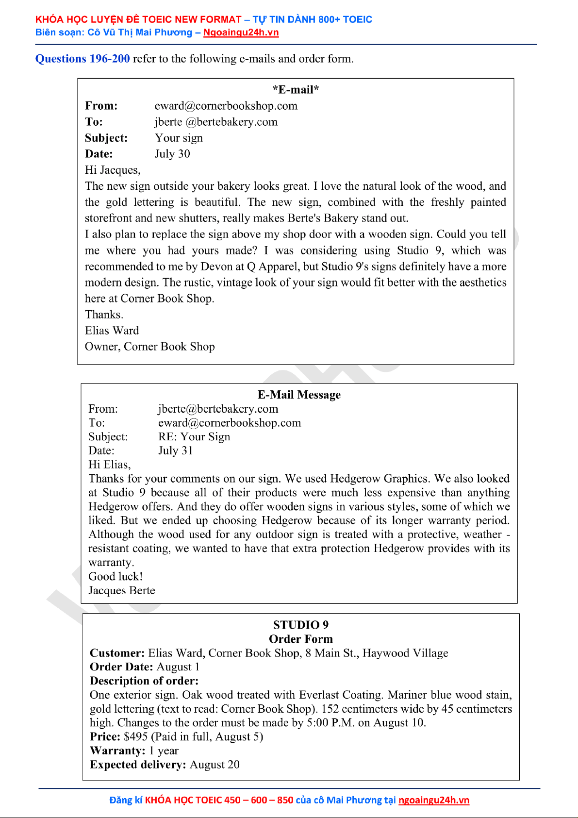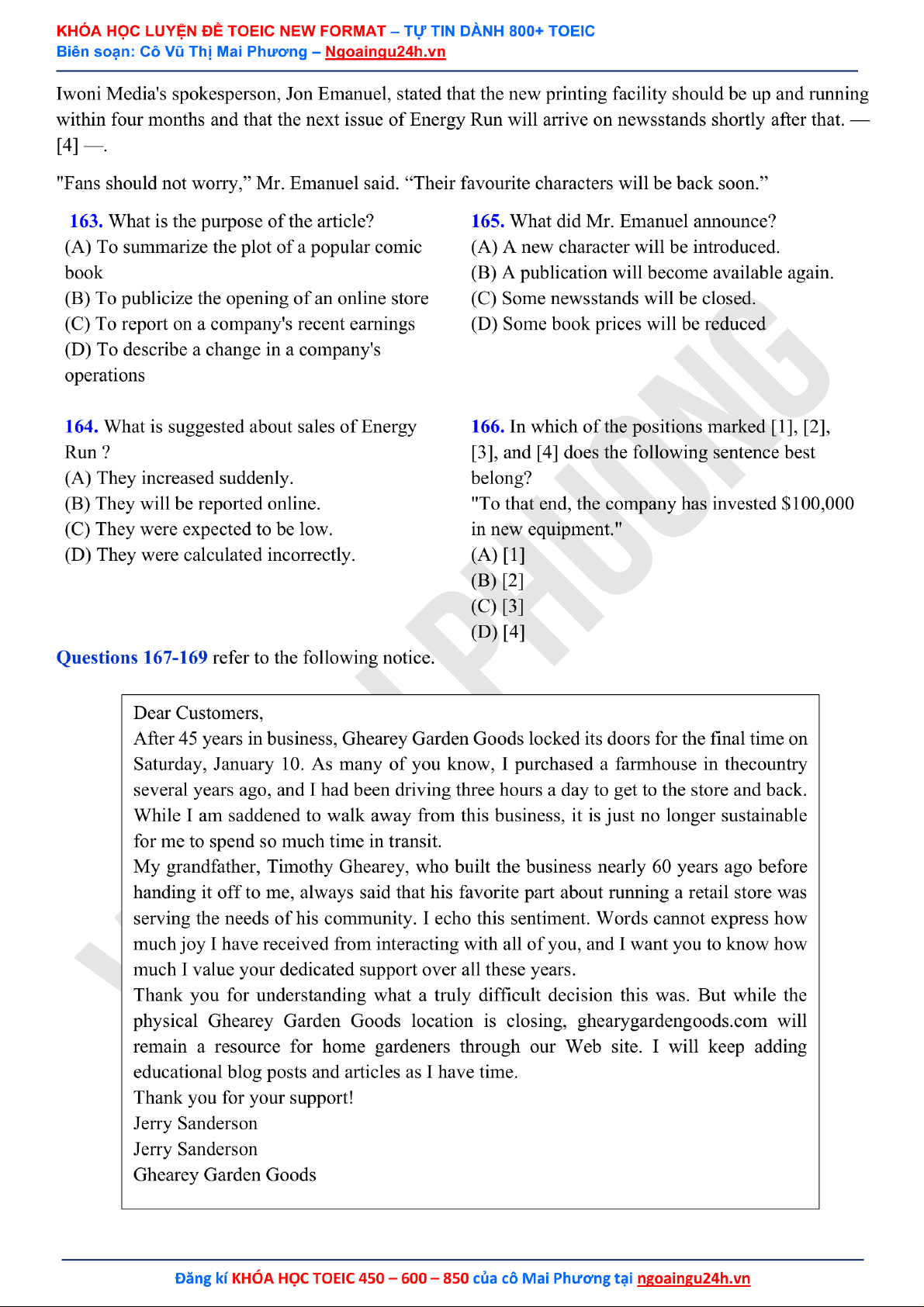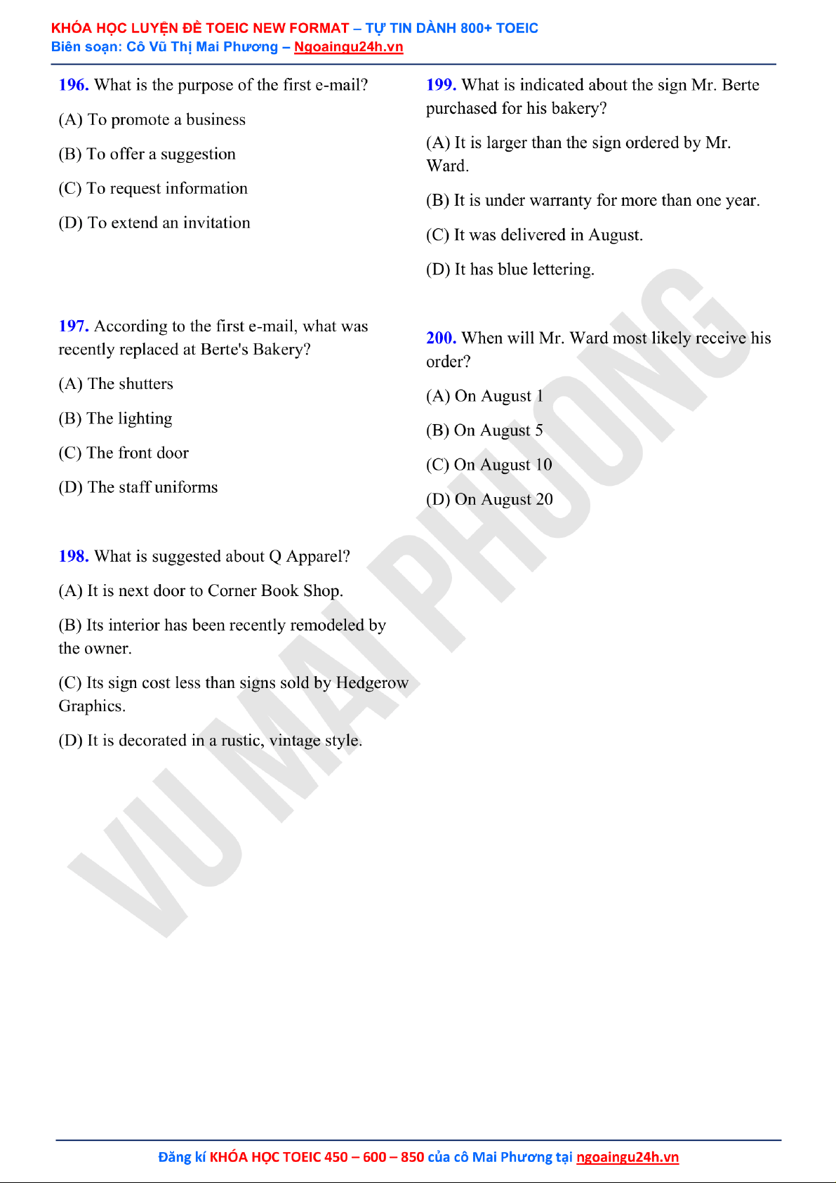 Luyện đề TOEIC new format | Tài liệu Tiếng Anh cô Mai Phương