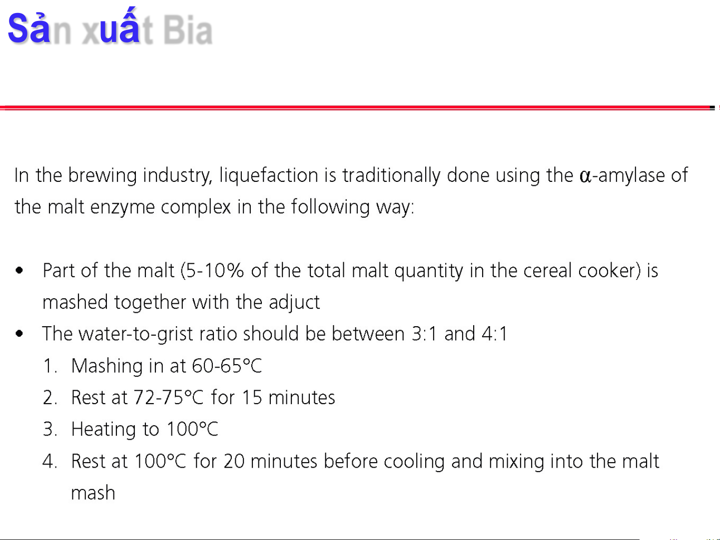 Nguyên lieu: Hồ hoá và đường hoá: Sản xuất Bia Nguyên liệu: Sản xuất Bia