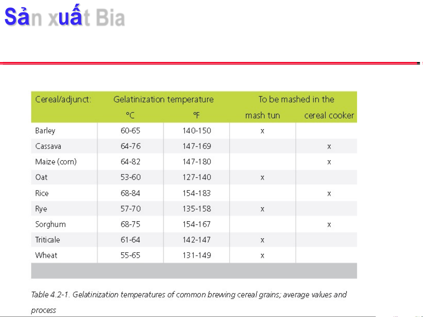 Nguyên liệu: hồ hoá Sản xuất Bia Hồ hoá: Sản xuất Bia Hồ hoá: