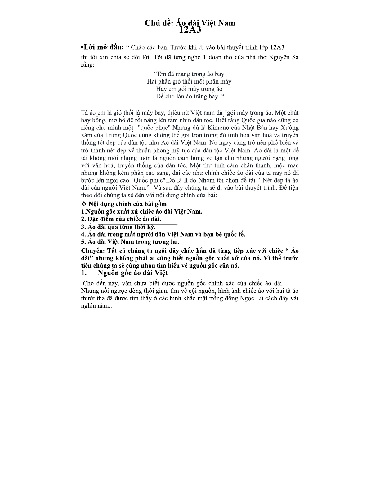12A - Thuyết Trình Về Nét Đẹp Áo Dài Việt Nam