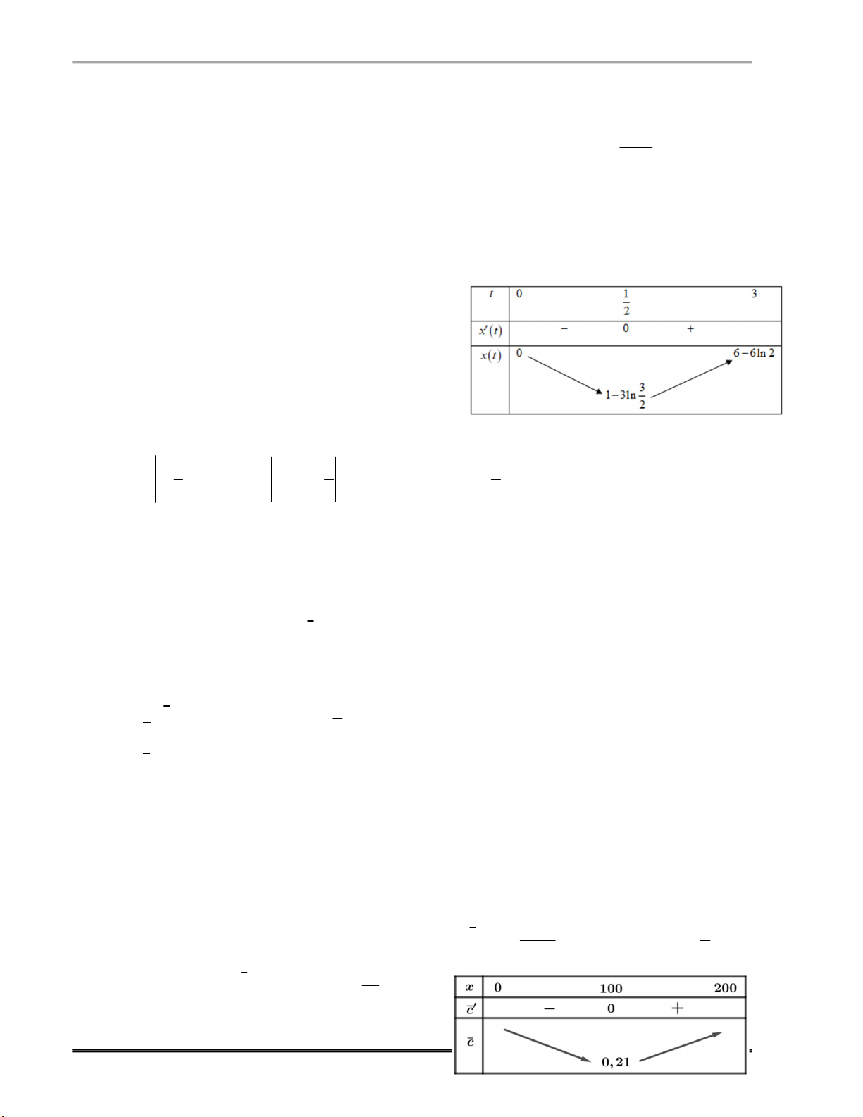 d) Đúng. Xét hàm số x t 2t 3lnt 1 trên 0; 3 . Ta có xt 3 1 2 0 t . t 1 2 Bảng biến thiên: