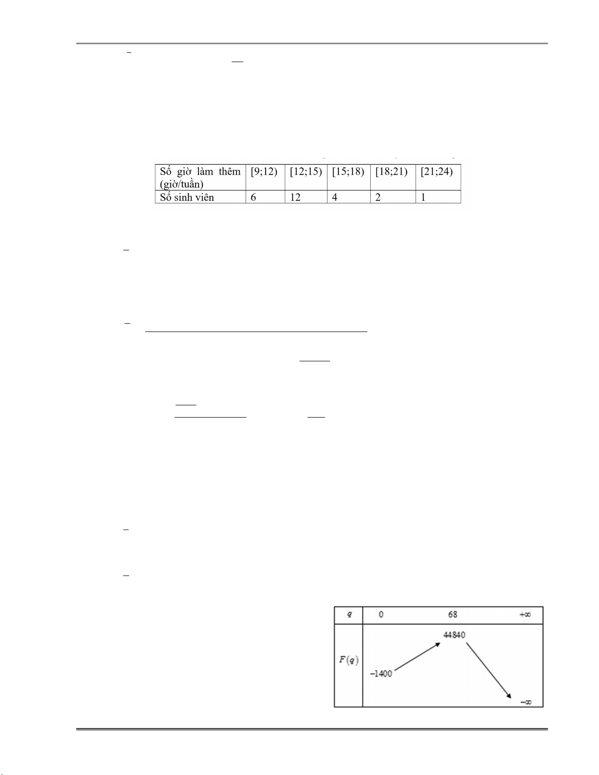 Câu 14.26. Phòng quản lý đào tạo trường Đại học Kinh tế quốc dân thống kê số giờ làm thêm của