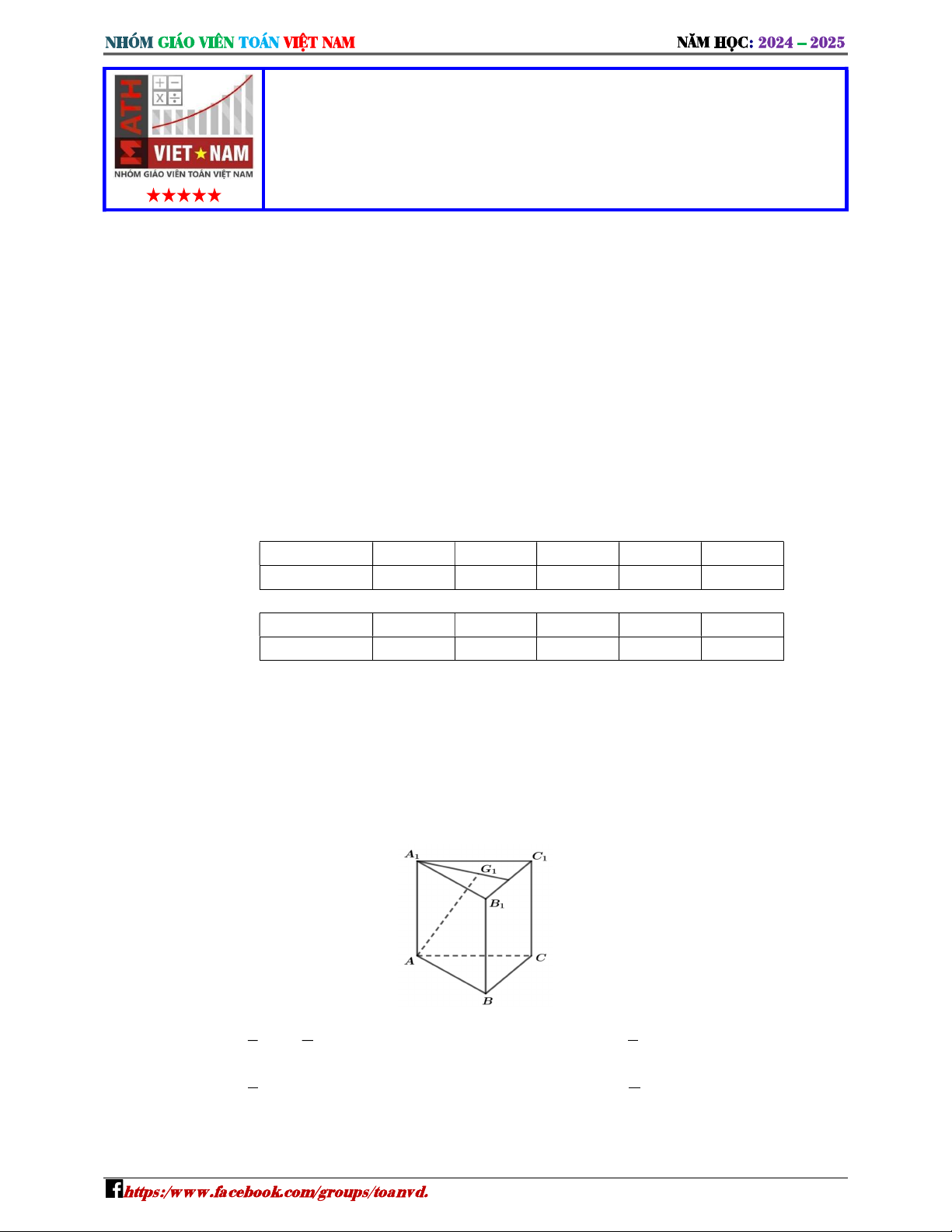 G = . Tổng của 3 số hạng đầu tiên của cấp số cộng này là Cho hình lăng trụ ọi là trọng tâm tam giác . Khi đó: = + ( + ) = + ( + )