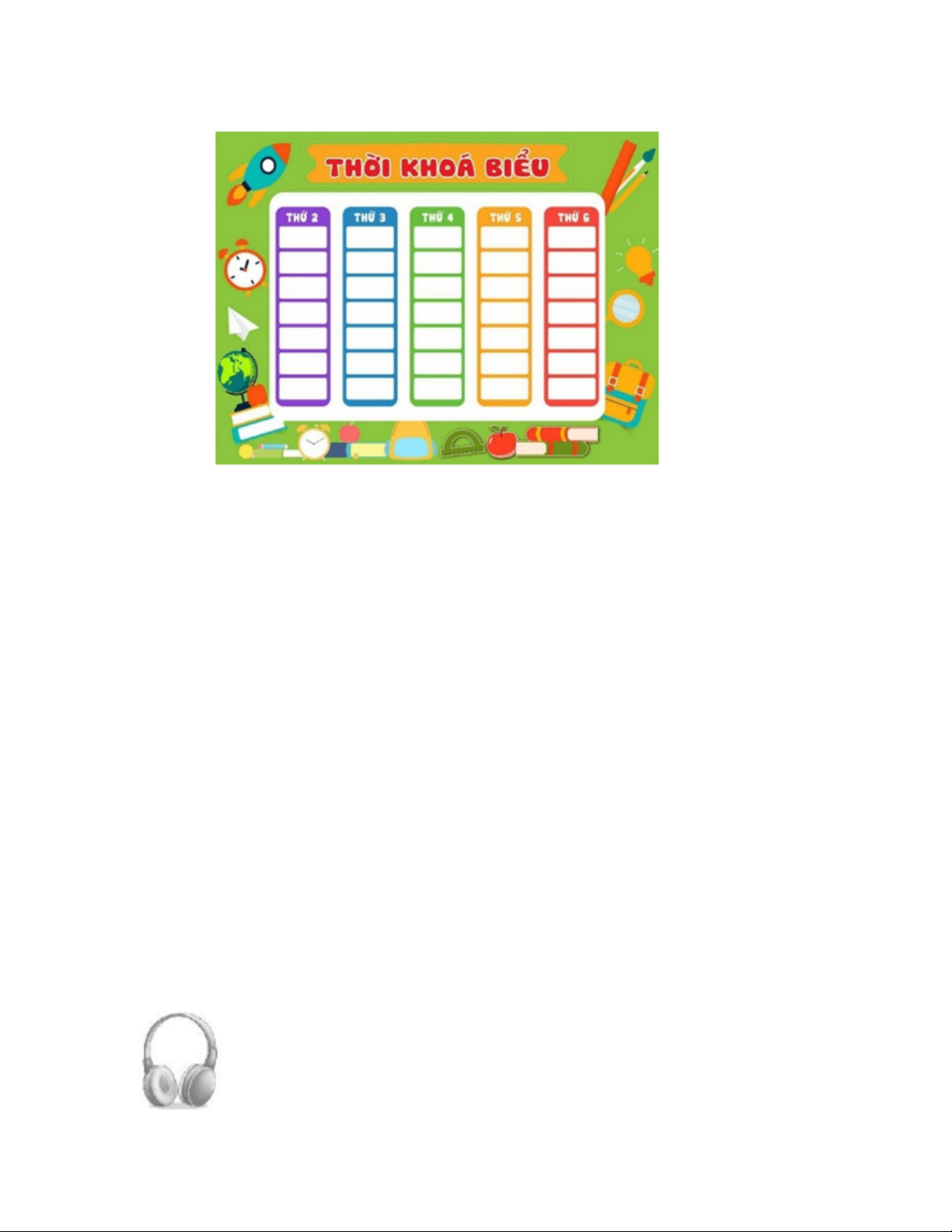 Câu 1: Thông tin trong thời khóa biểu (hình dưới) thuộc thông tin dạng nào? A. Hình ảnh, âm thanh. B. Âm thanh, chữ. C. chữ, hình ảnh. D. Con số, âm thanh.