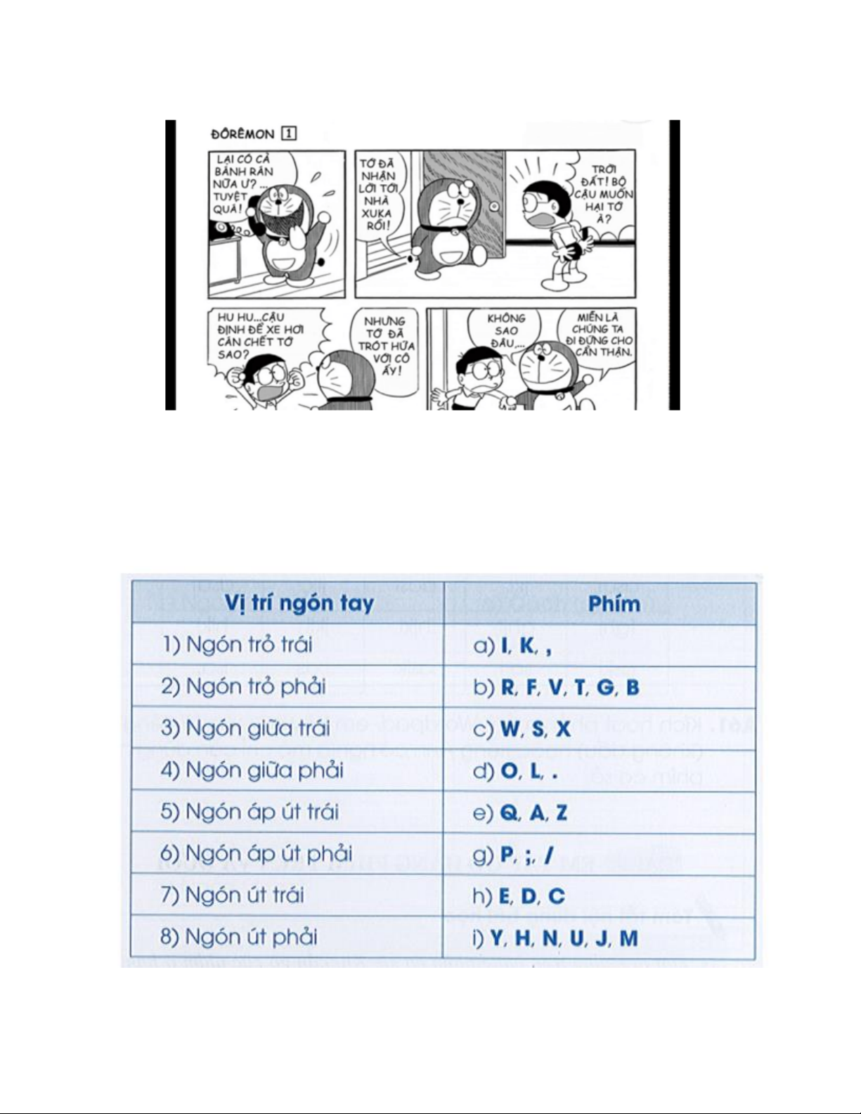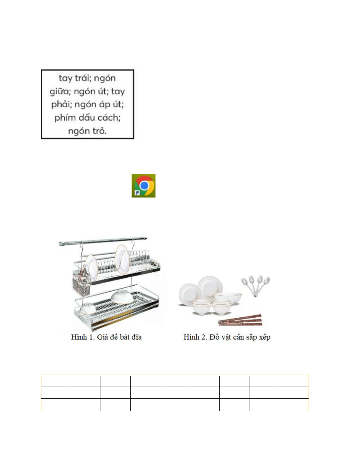 cách đặt ngay ngón tay lên đúng phím (sử dụng các cụm từ gợi ý trong khung, một cụm
