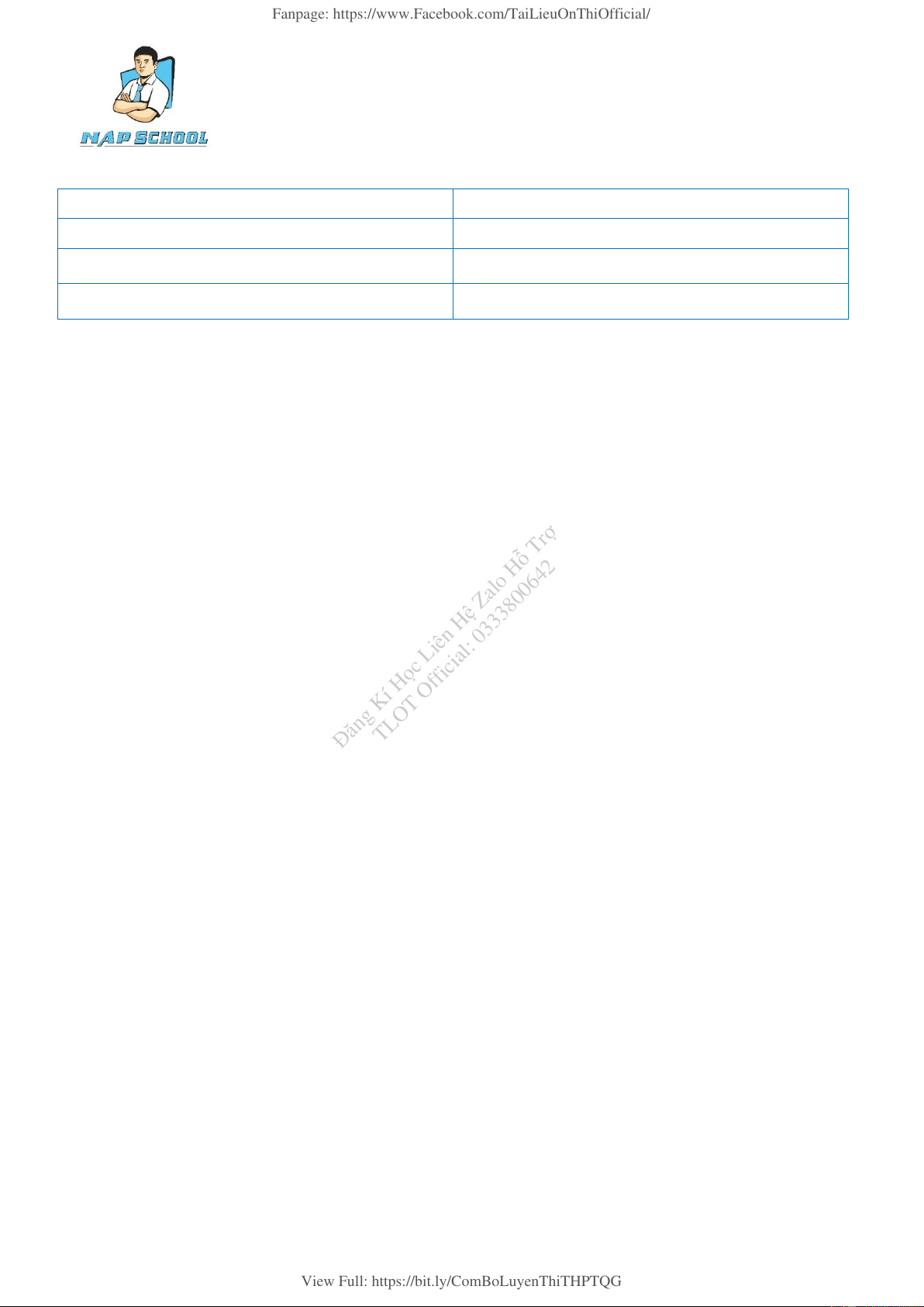 Fanpage: https://www.Facebook.com/TaiLieuOnThiOfficial/ ợ ỗ Tr ệ Zalo H ọc Liên H ng Kí H Đă TLOT Official: 0333800642