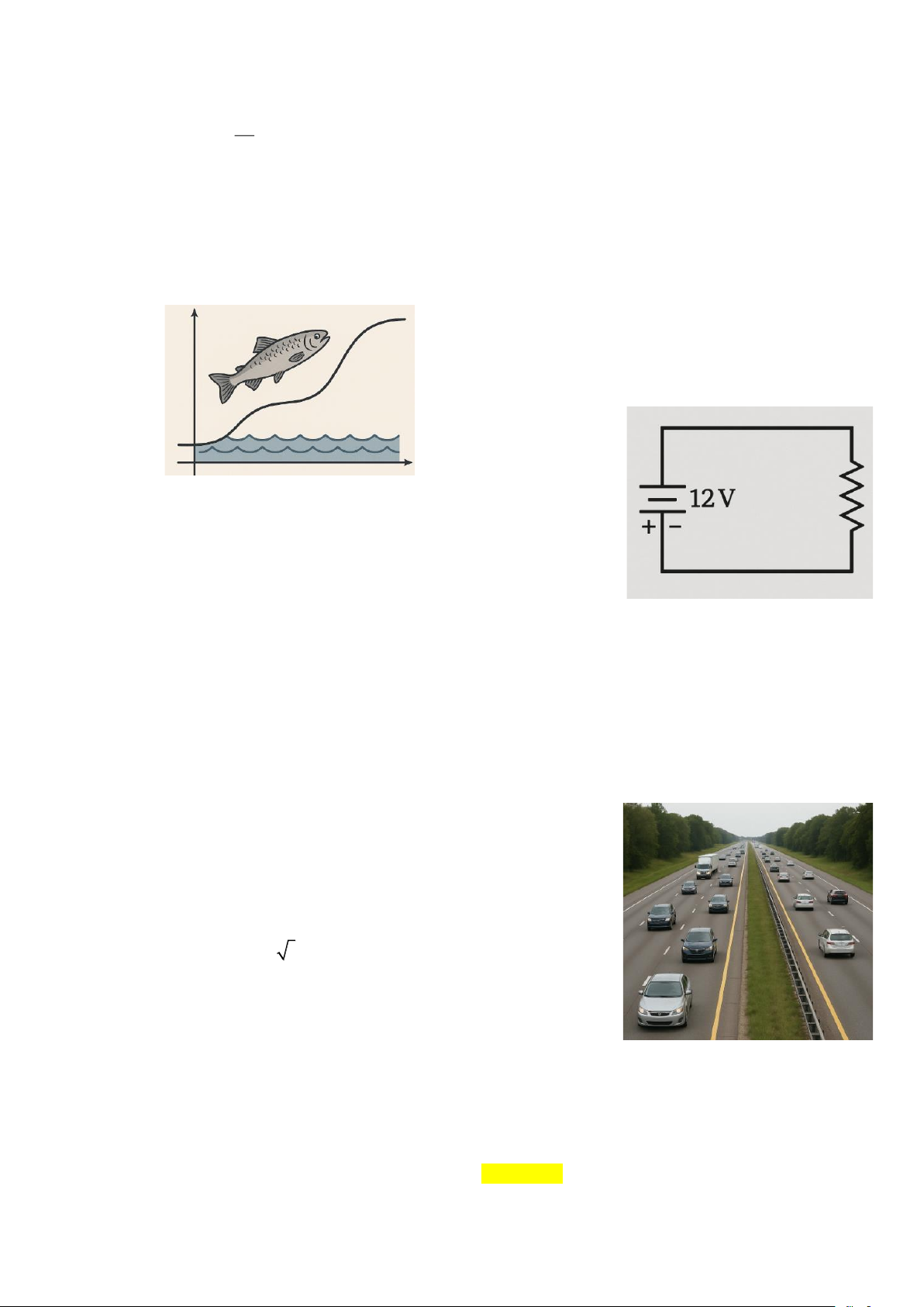 Câu 8. Một con cá bơi ngược dòng để vượt khoảng cách 250km . Vận tốc dòng nước là 5 km / h . Nếu
