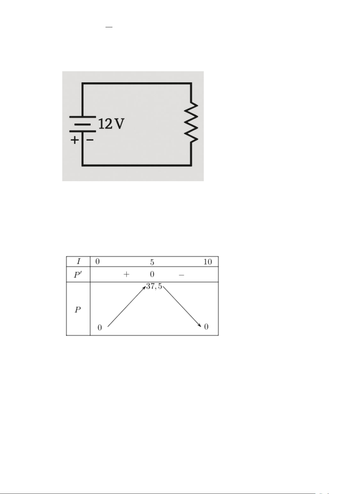 Câu 9. Công suất P (đơn vị W) của một mạch điện được cung cấp bởi một nguồn pin 12V được cho bởi công thức 2