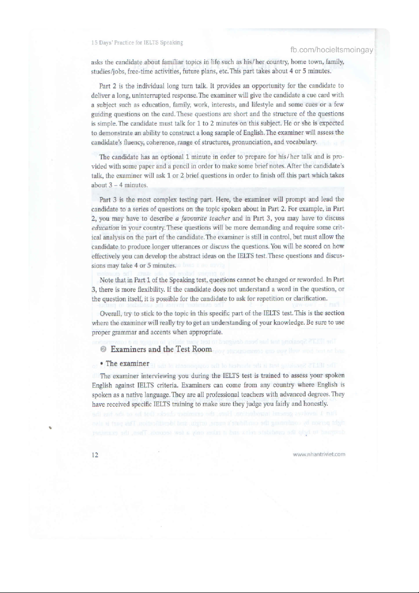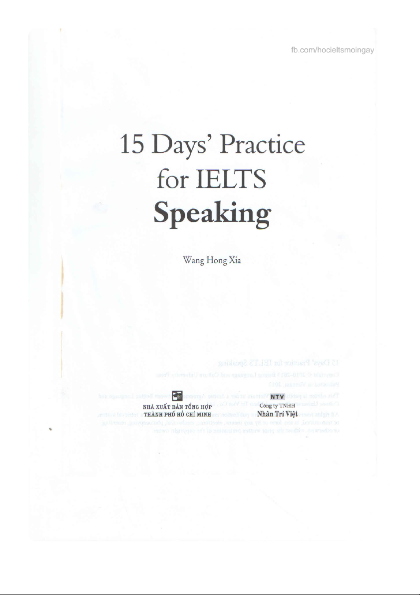 15 DAYS Pratice FOR Speaking - Tài liệu tham khảo | Đại học Hoa Sen và phục vụ nhu cầu học tập của mình cụ thể là có định hướng, ôn tập, nắm vững kiến thức môn học và làm bài tốt trong những bài kiểm tra, bài tiểu luận, bài tập kết thúc học phần, từ đó học tập tốt và có kết quả