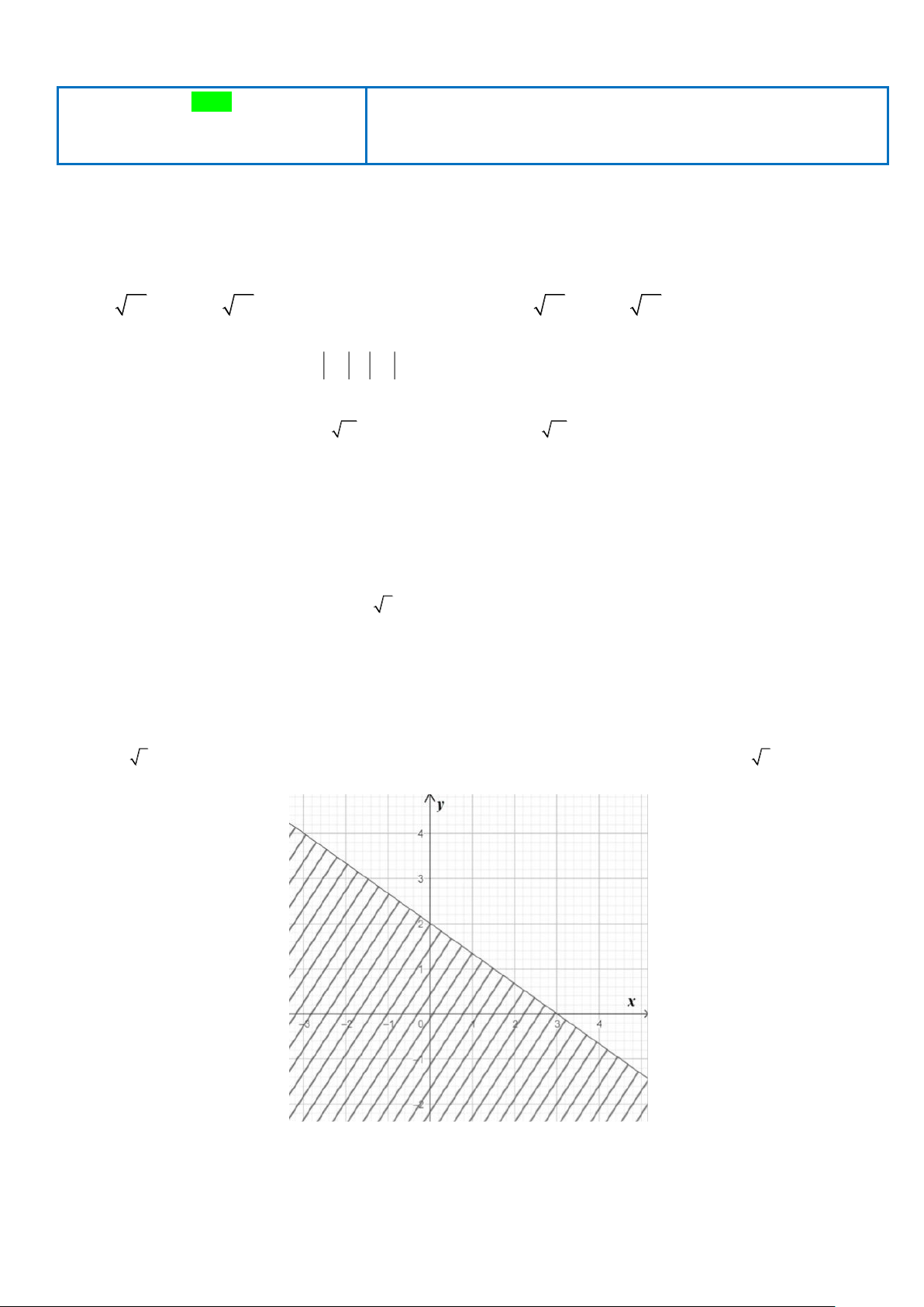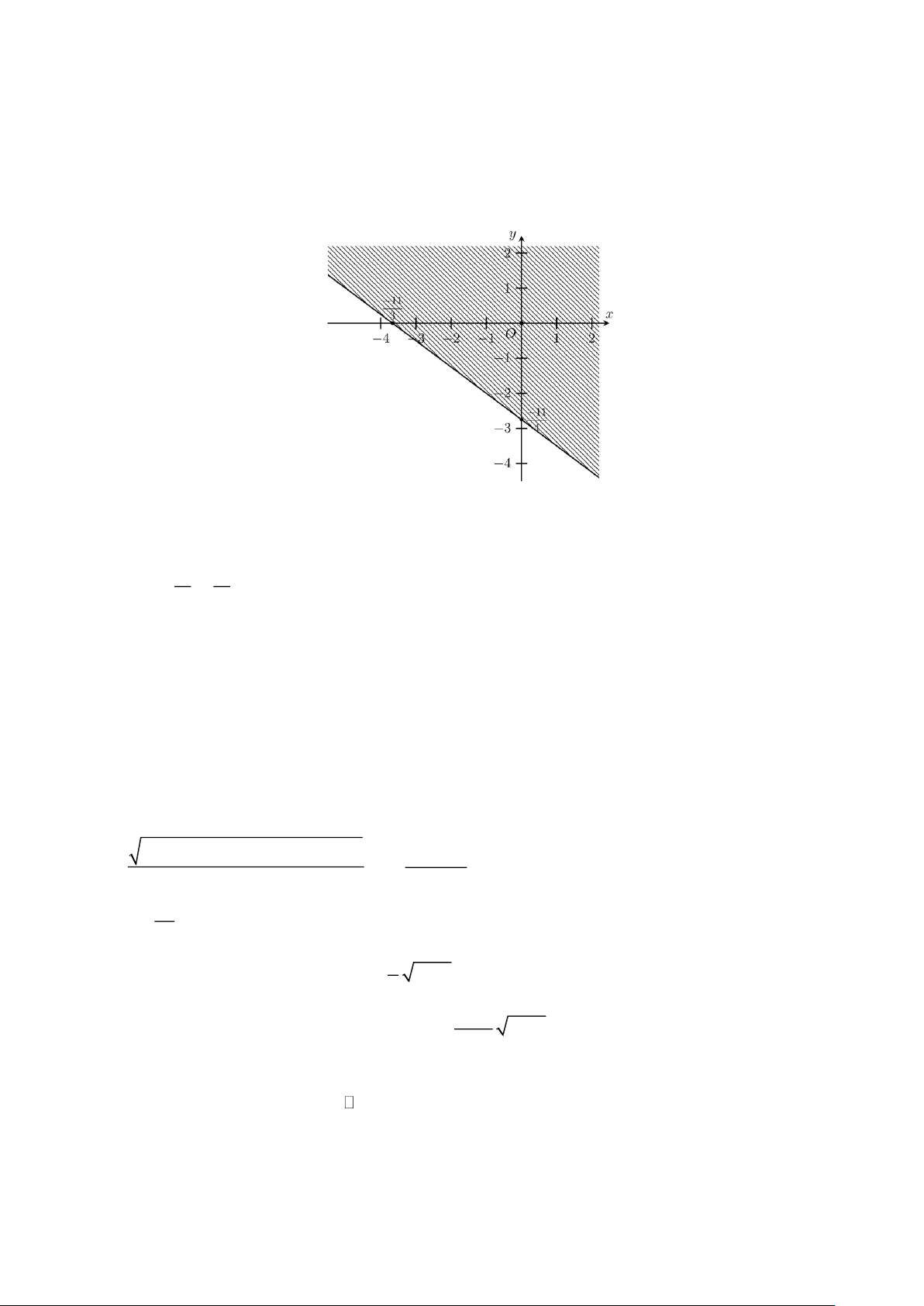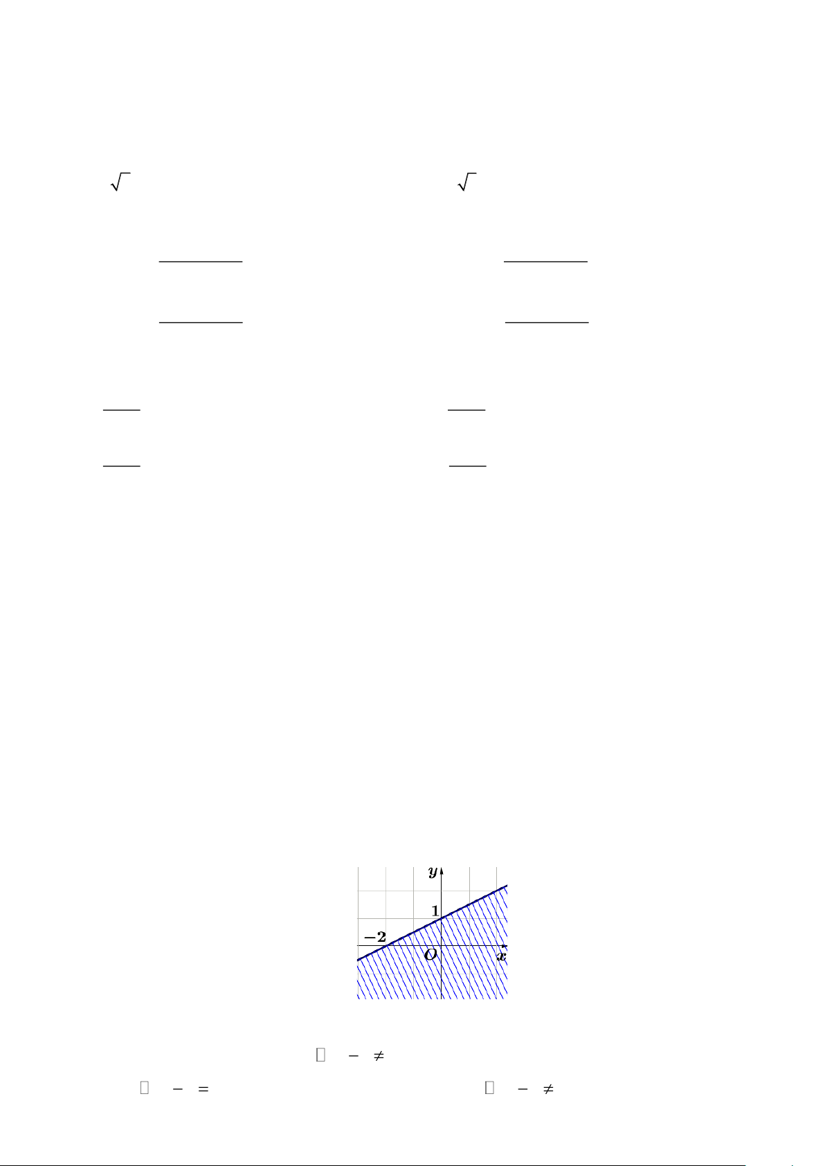 Câu 9. Phần không gạch bỏ (kể cả đường thẳng) trong hình sau là miền nghiệm của bất phương trình?