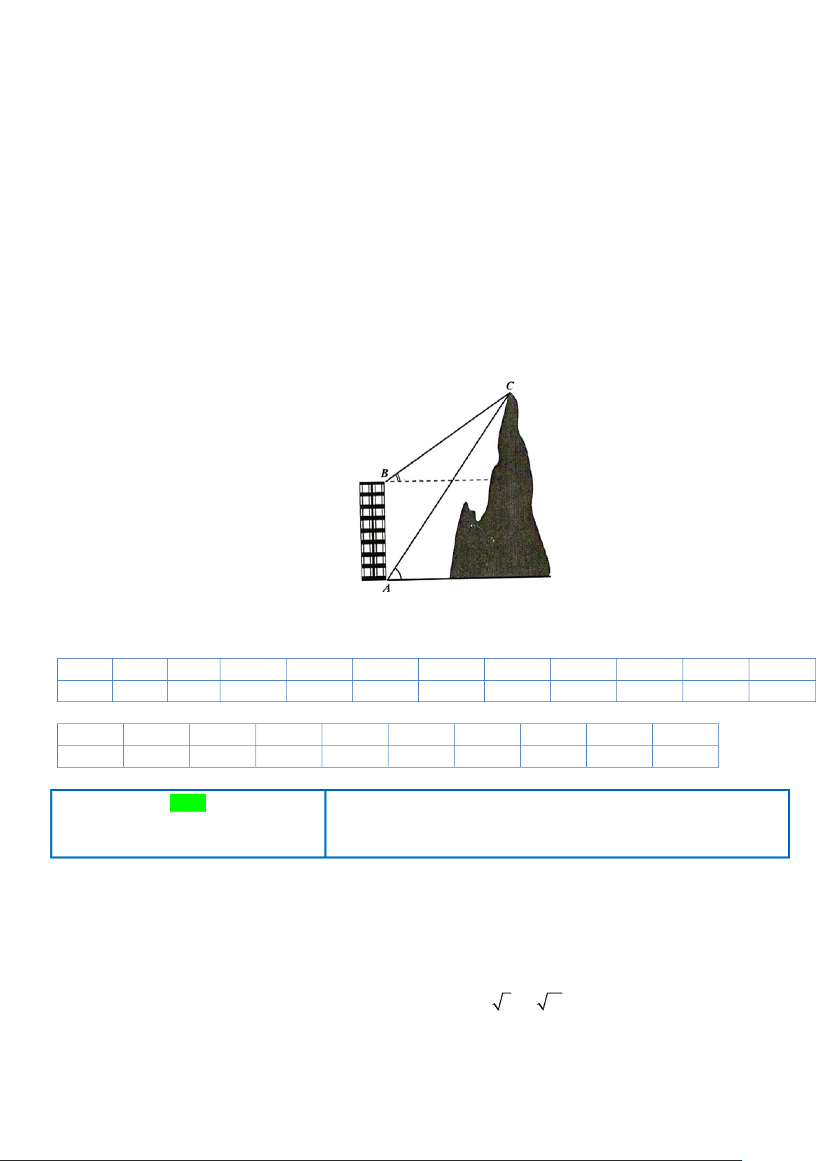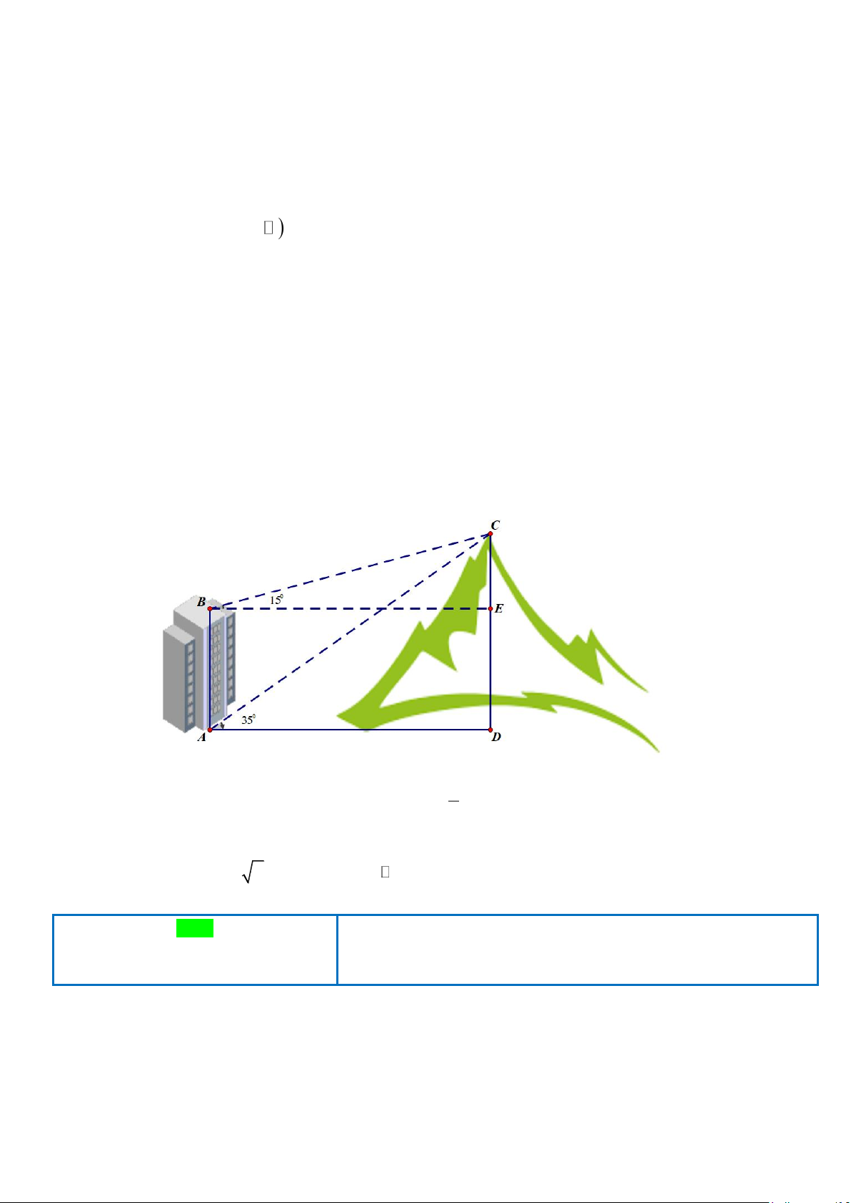 (như hình vẽ). Tính chiều cao ngọn núi biết rằng tòa nhà cao 50(m) (làm tròn kết quả đến hàng đơn vị) 3 Câu 6.