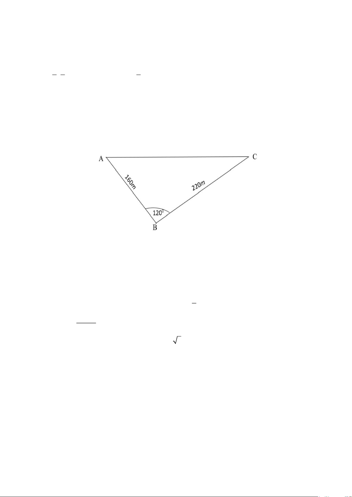 m BC = 220m , · ABC = 120° .