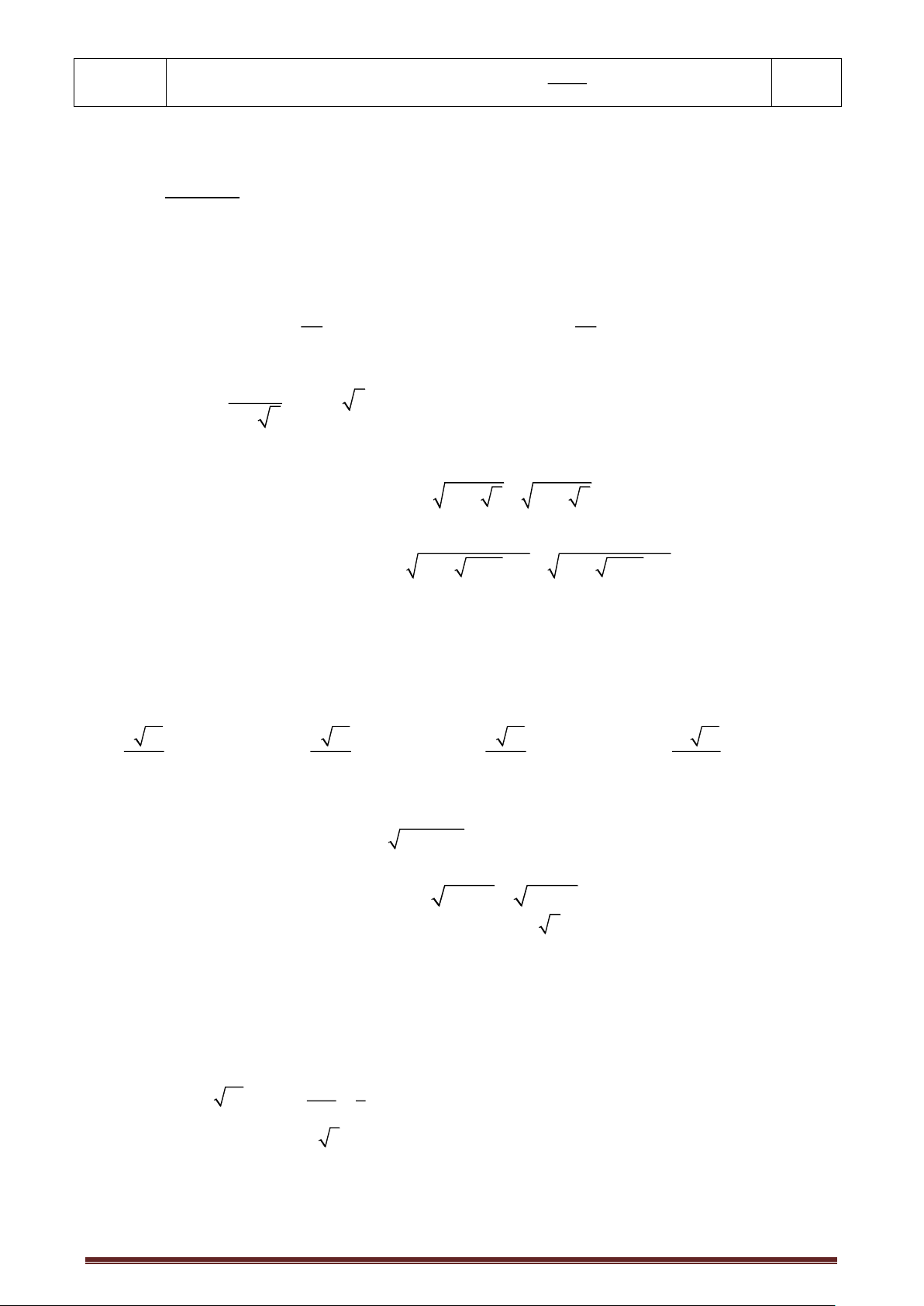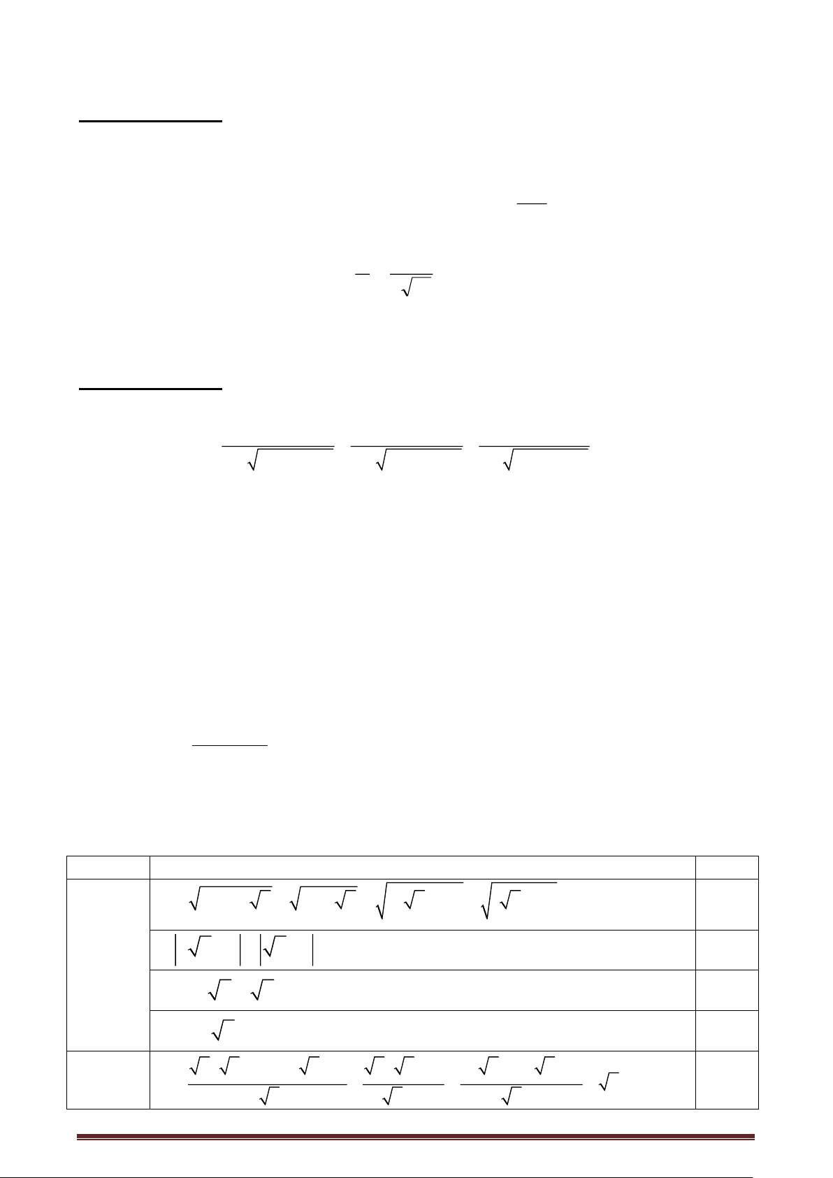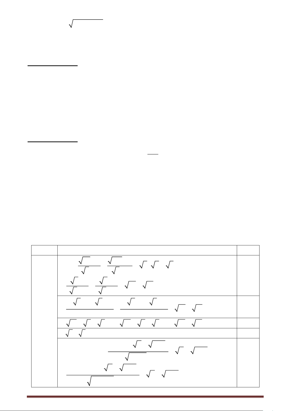 (Hướng dẫn chấm gồm 03 trang) Câu Đáp án Điểm 20 + 2 112 + 4 1)A = − + 5 ( 7 − 3) 3 −1 5 +1 0,25 2 5 + 2 4 7 + 4 = − + 35 − 15 3 −1 5 +1 2( 5 + ) 1 ( 3 + ) 1 4( 7 + ) 1 ( 5 − ) 1 = − + 35 − 15 0,25 − − Câu 1 3 1 5 1