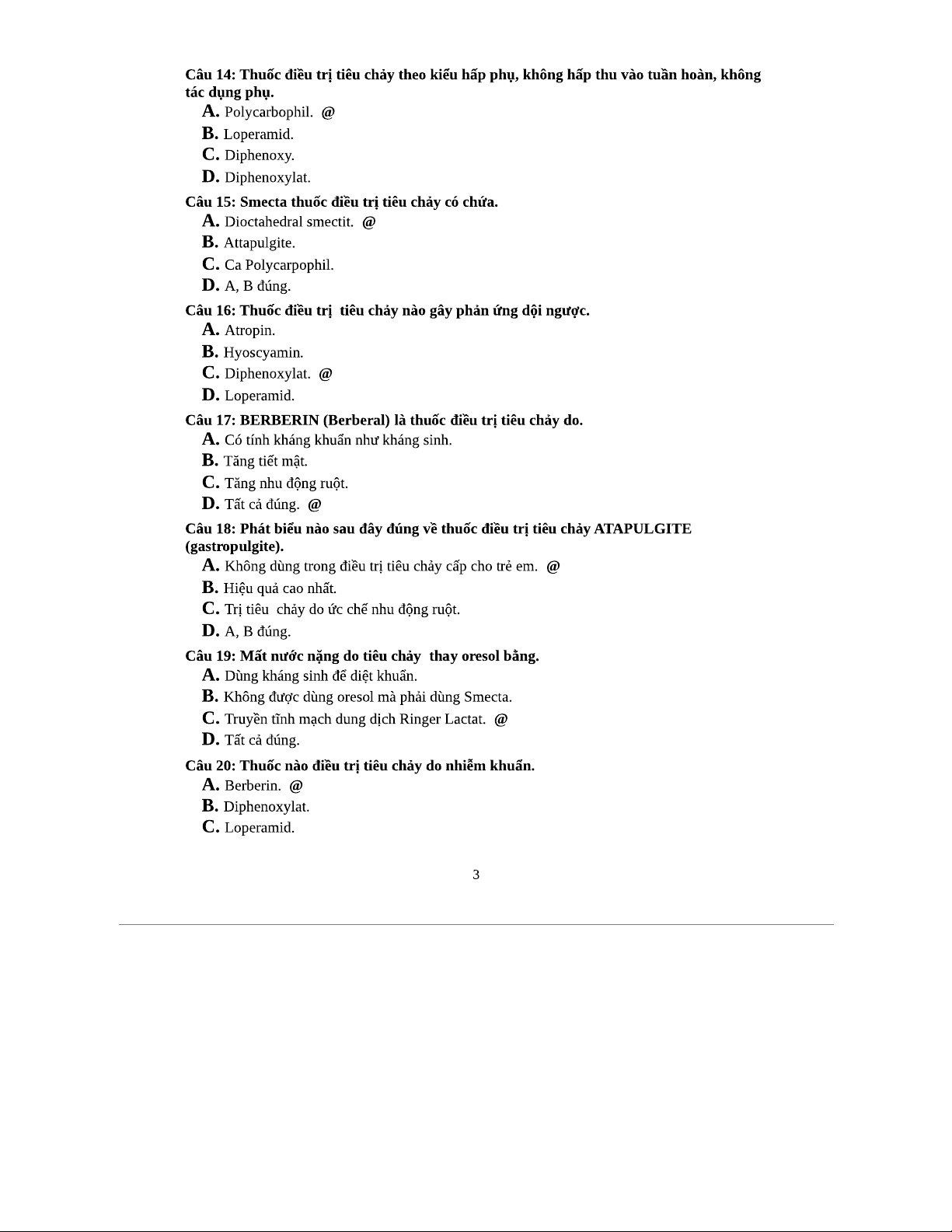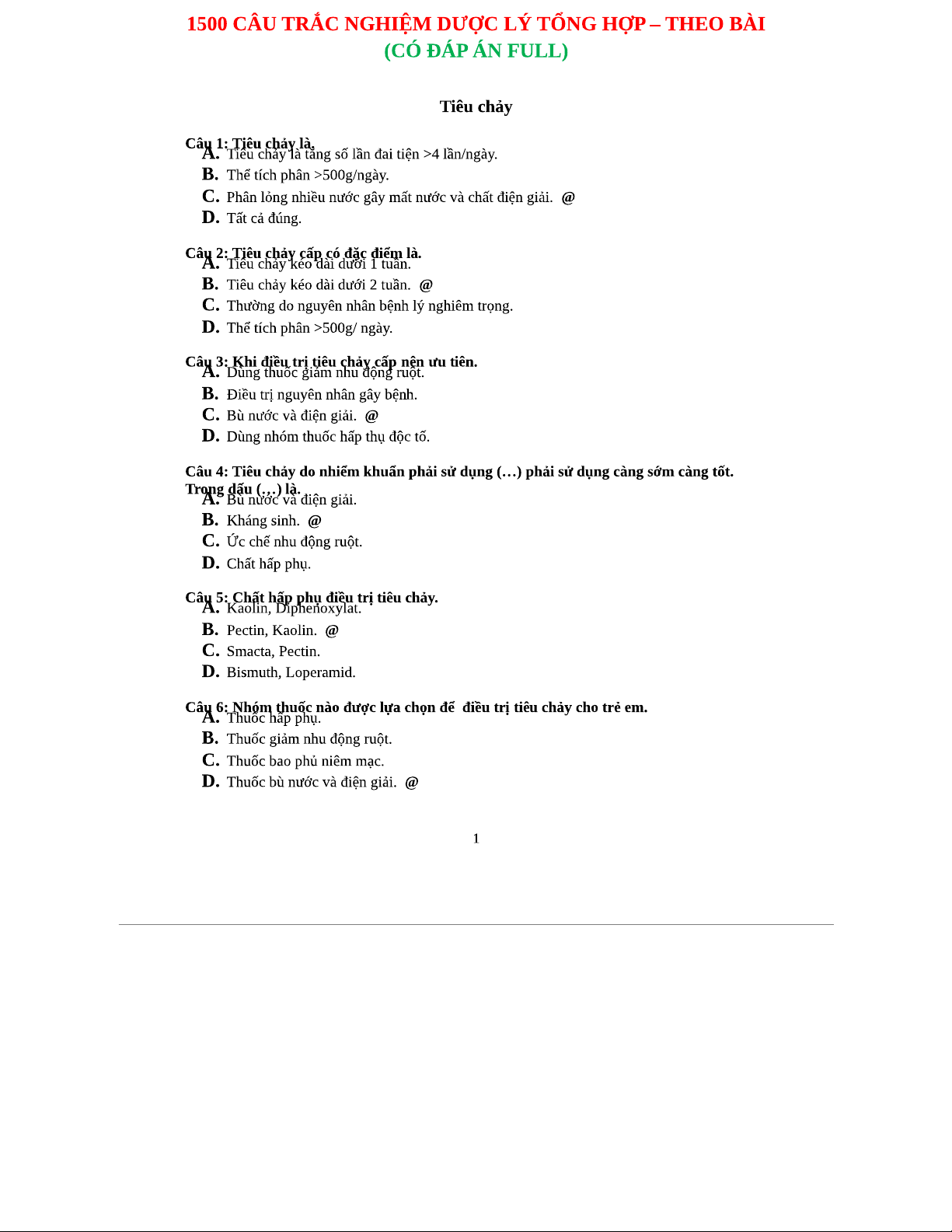 1500 Câu Trắc Nghiệm Dược Lý Tổng Hợp [123doc] - Đáp Án Full