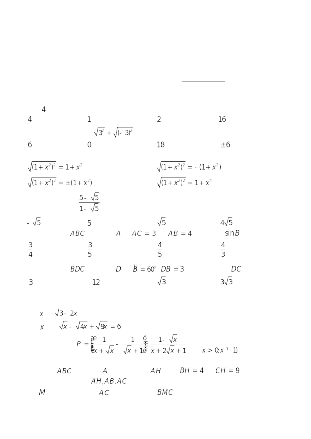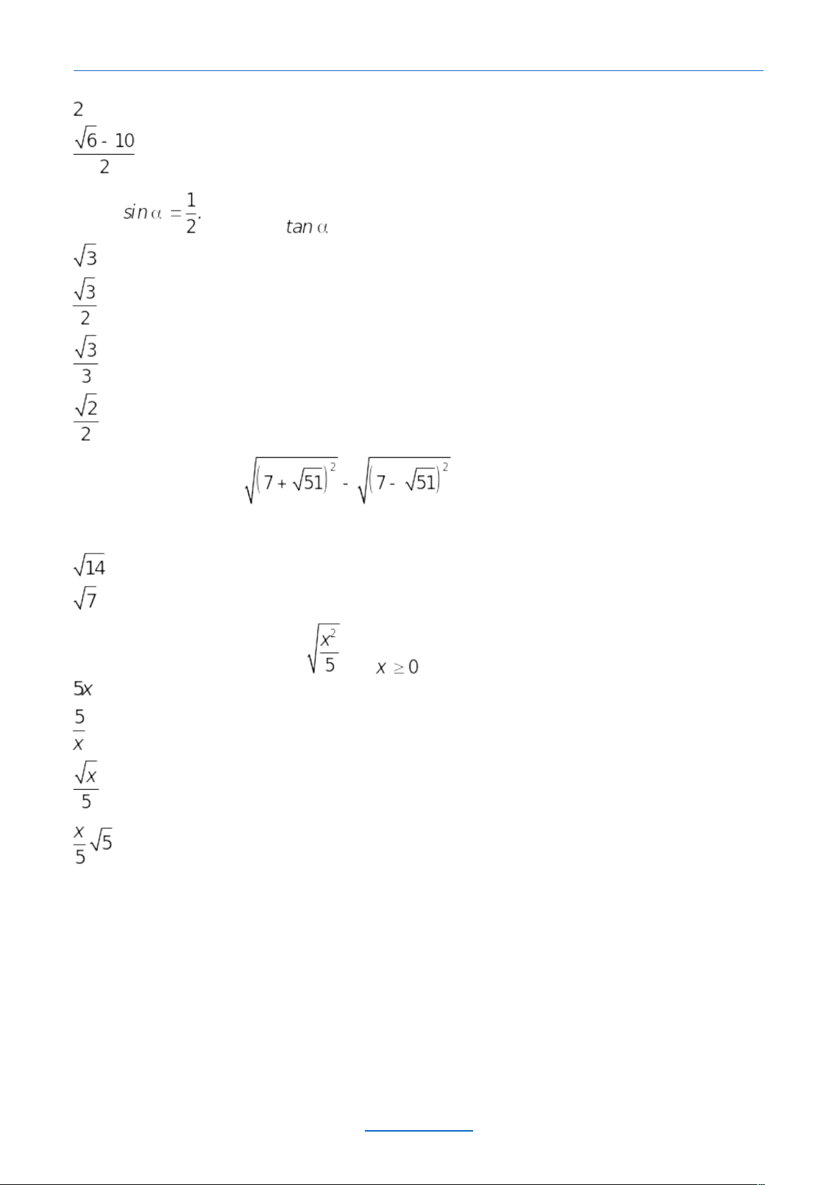 Câu 47. Trục căn dưới mẫu của biểu thức là: