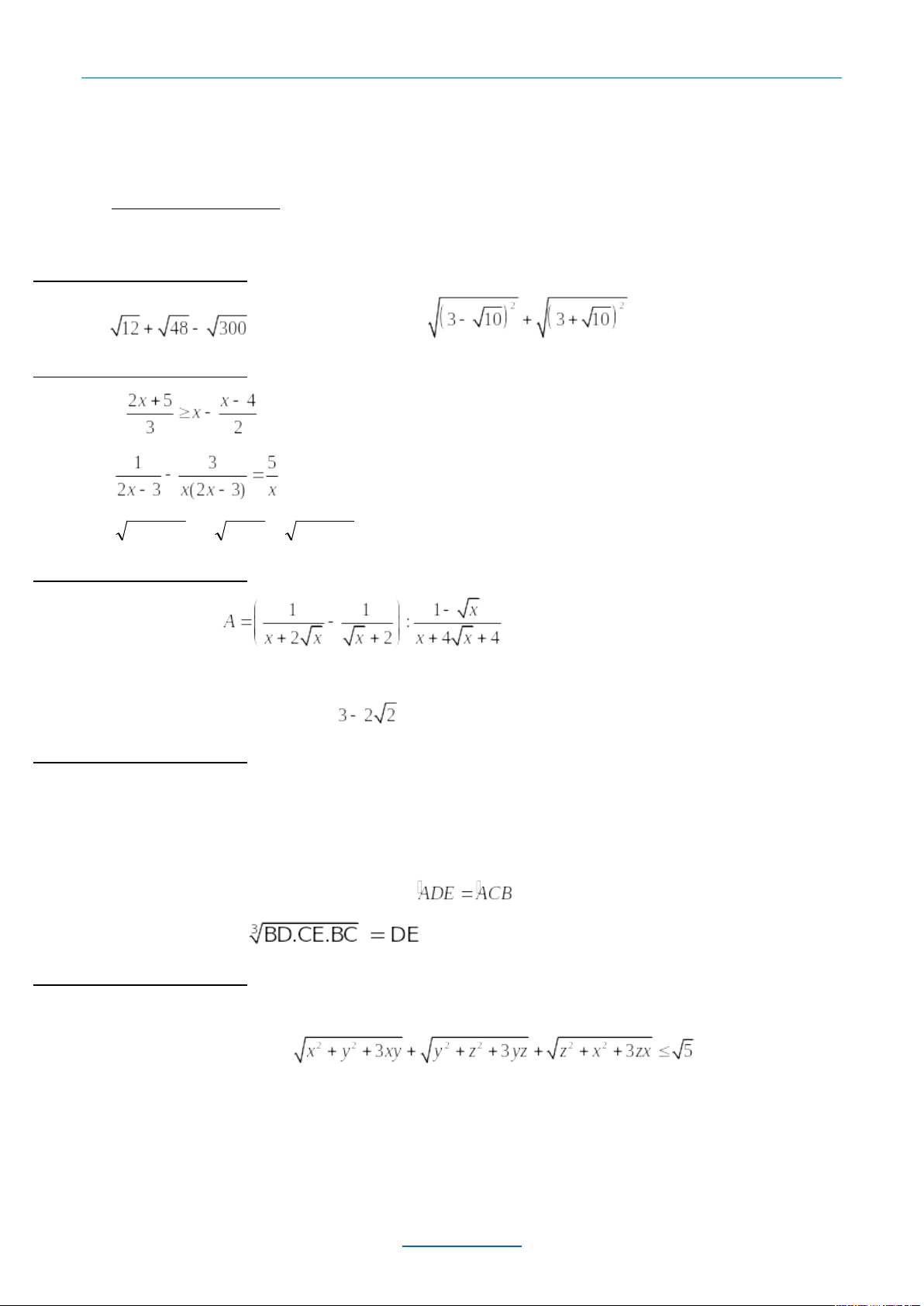 Câu 1 (2,0 Điểm): Rút gọn các biểu thức sau