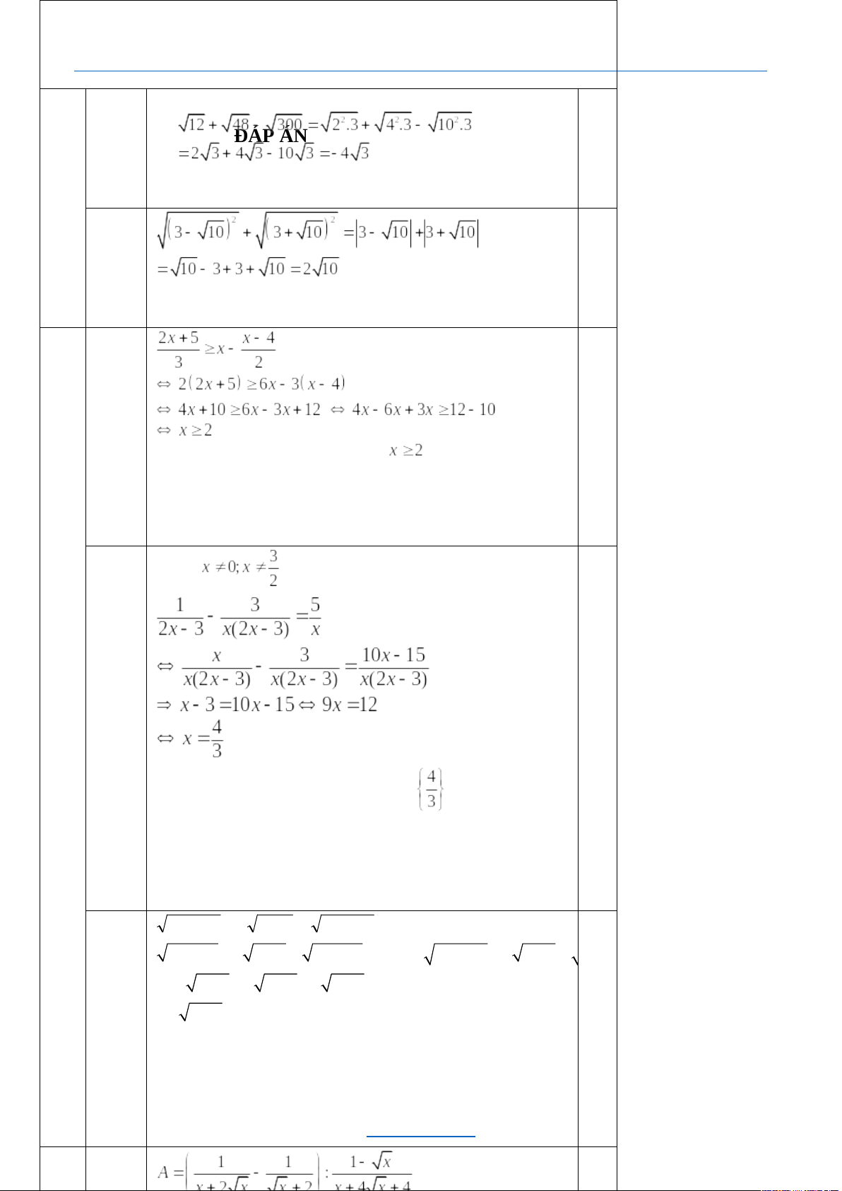 Câu 2 (2,5 Điểm): Giải bất phương trình và các phương trình sau