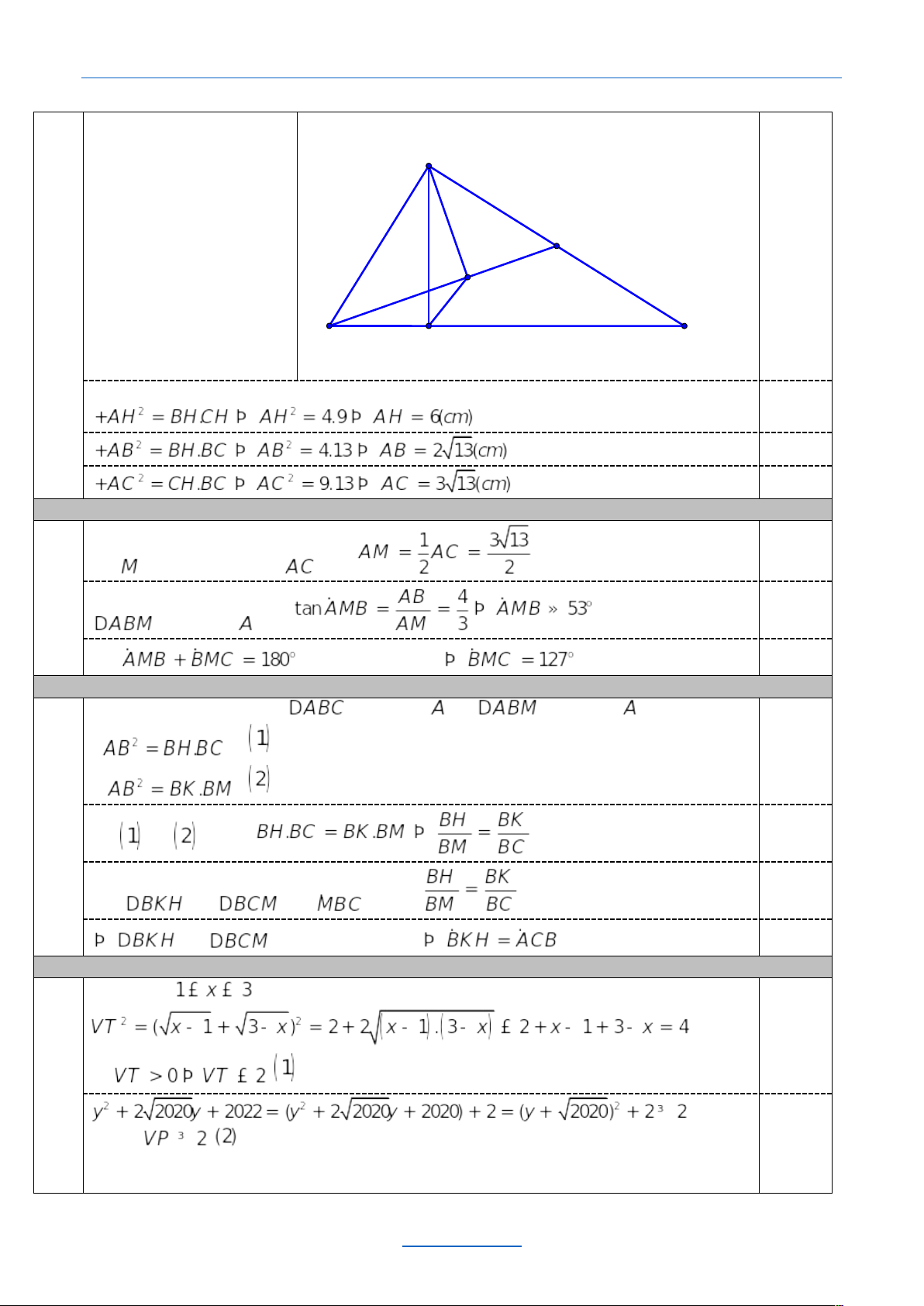 a) Biết BH = 4 cm và CH = 9cm . Tính độ dài đoạn thẳng AH