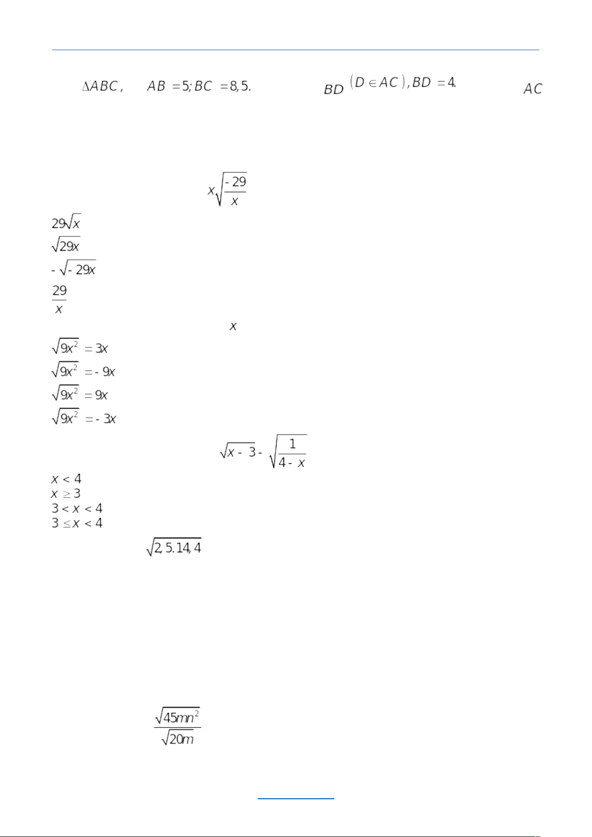 Câu 45. Cho vuông tại , đường cao , biết Độ dài đường cao lả: