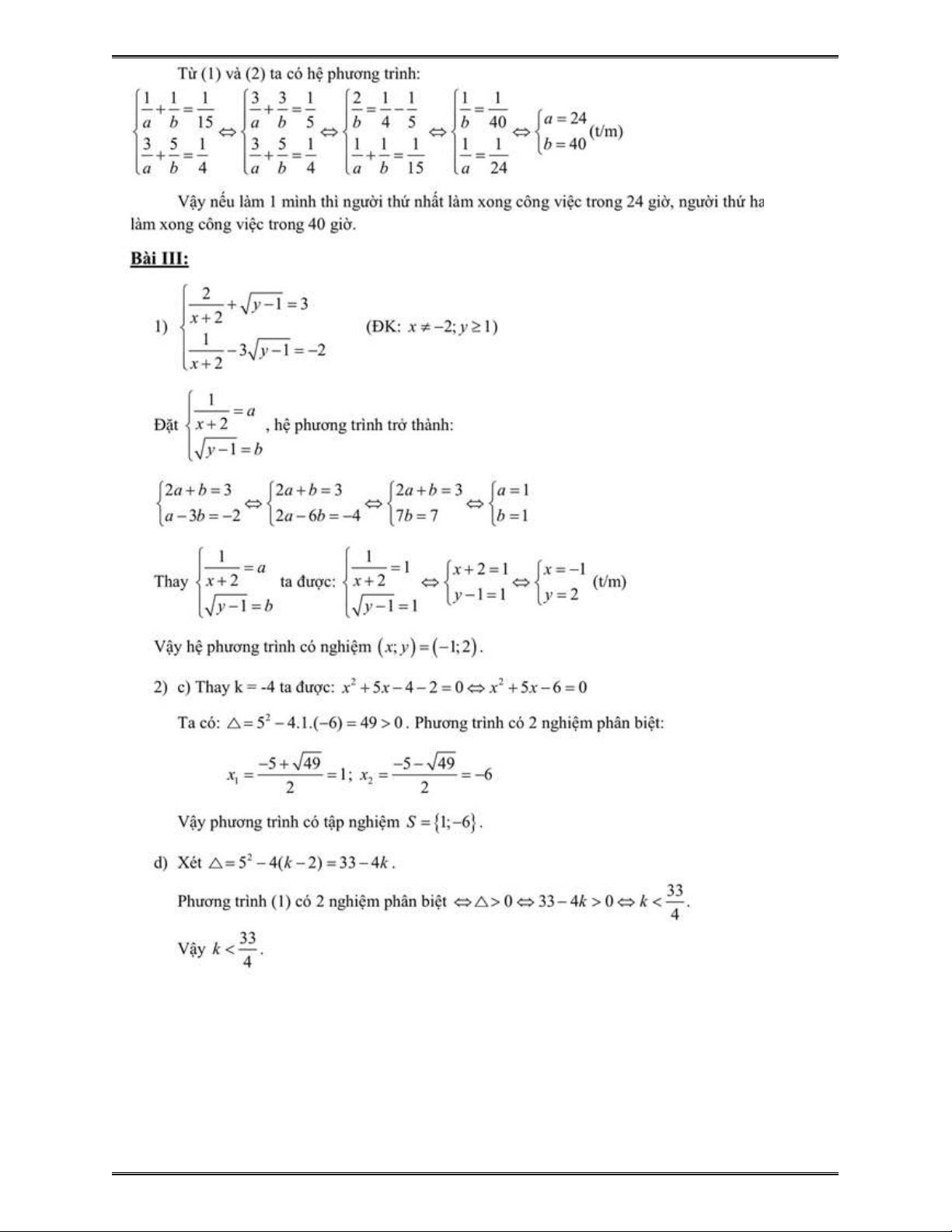 được công việc. Hỏi nếu làm một mình thì mỗi đội cần bao lâu sẽ xong công việc ki 6 đó? ên n Bài 3. (2,5 điểm) 2 y 2 4 ngày x 1