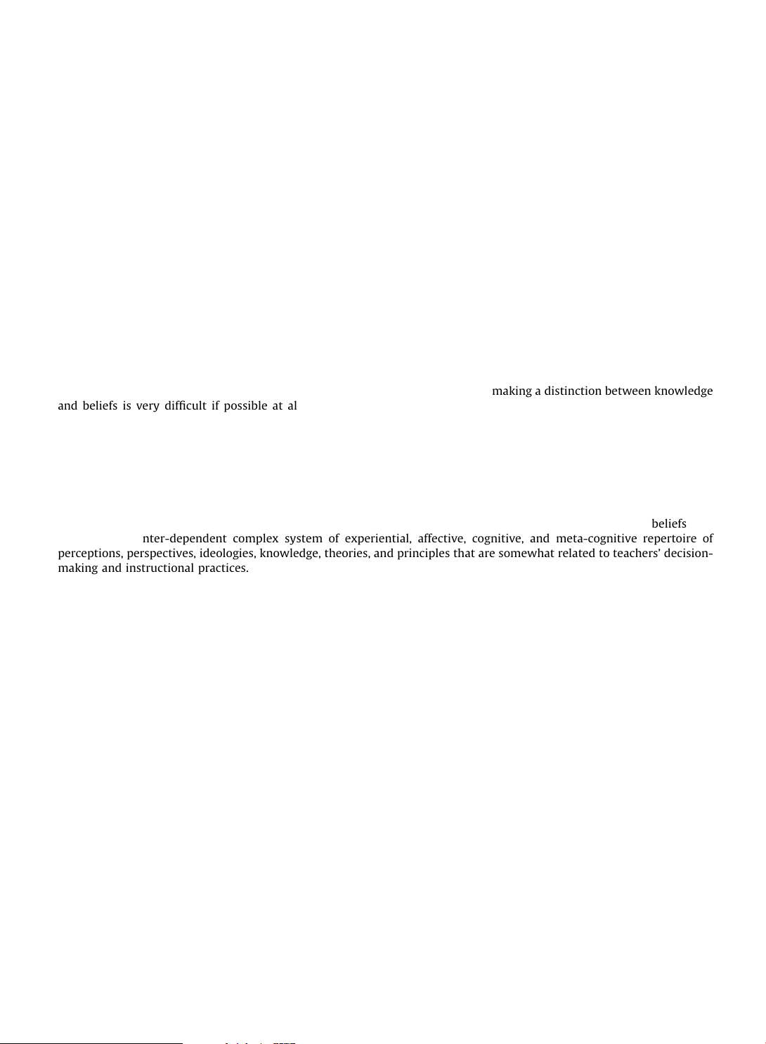 professional knowledge can be regarded more accurately as a belief’’ (p. 73), defining beliefs as a ‘‘piebald form of personal