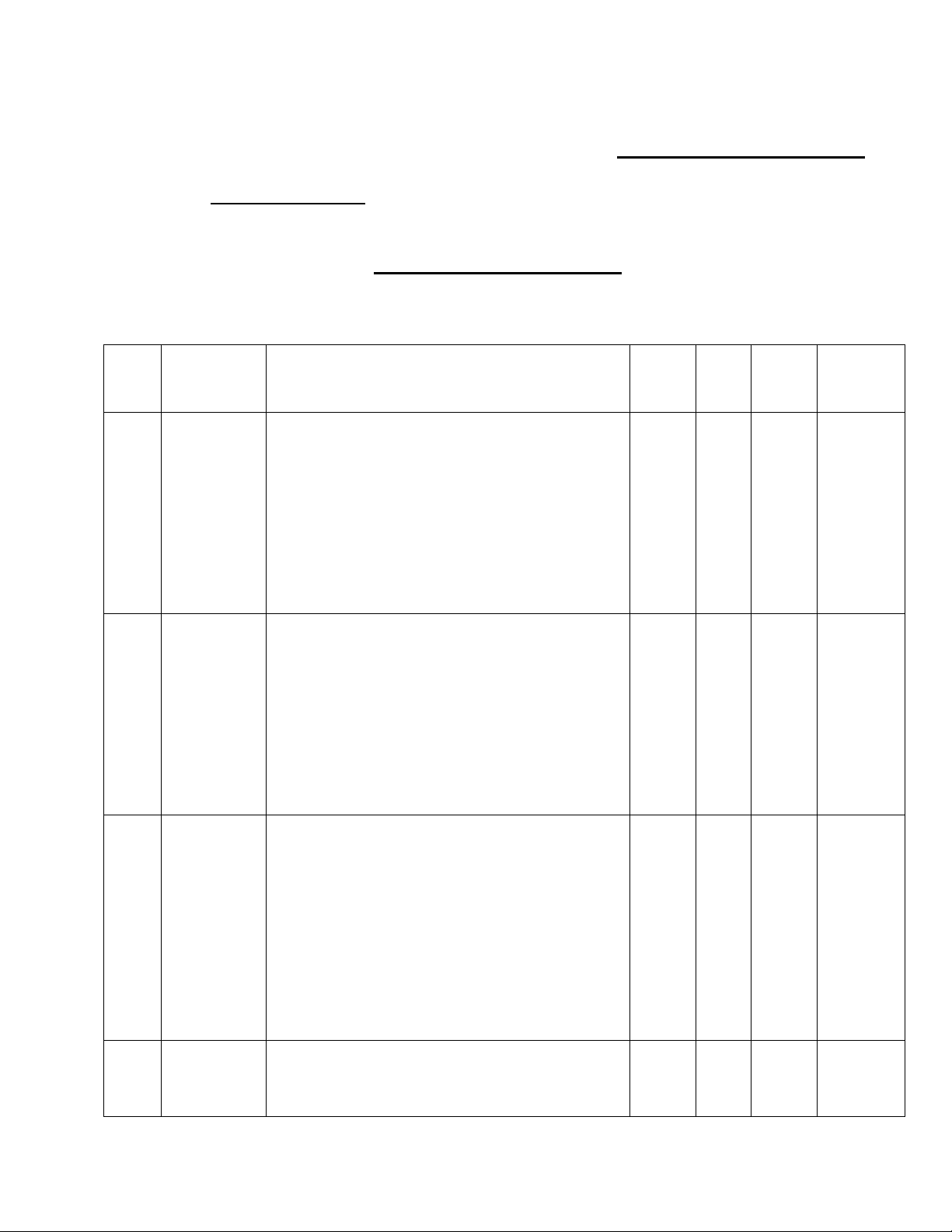 Loại câu hỏi: 0,25 điểm/1 câu (Loại câu hỏi trung bình) STT Mã câu Nội dung Đáp Loại Cố Nhóm hỏi án câu định câu thay thế 1