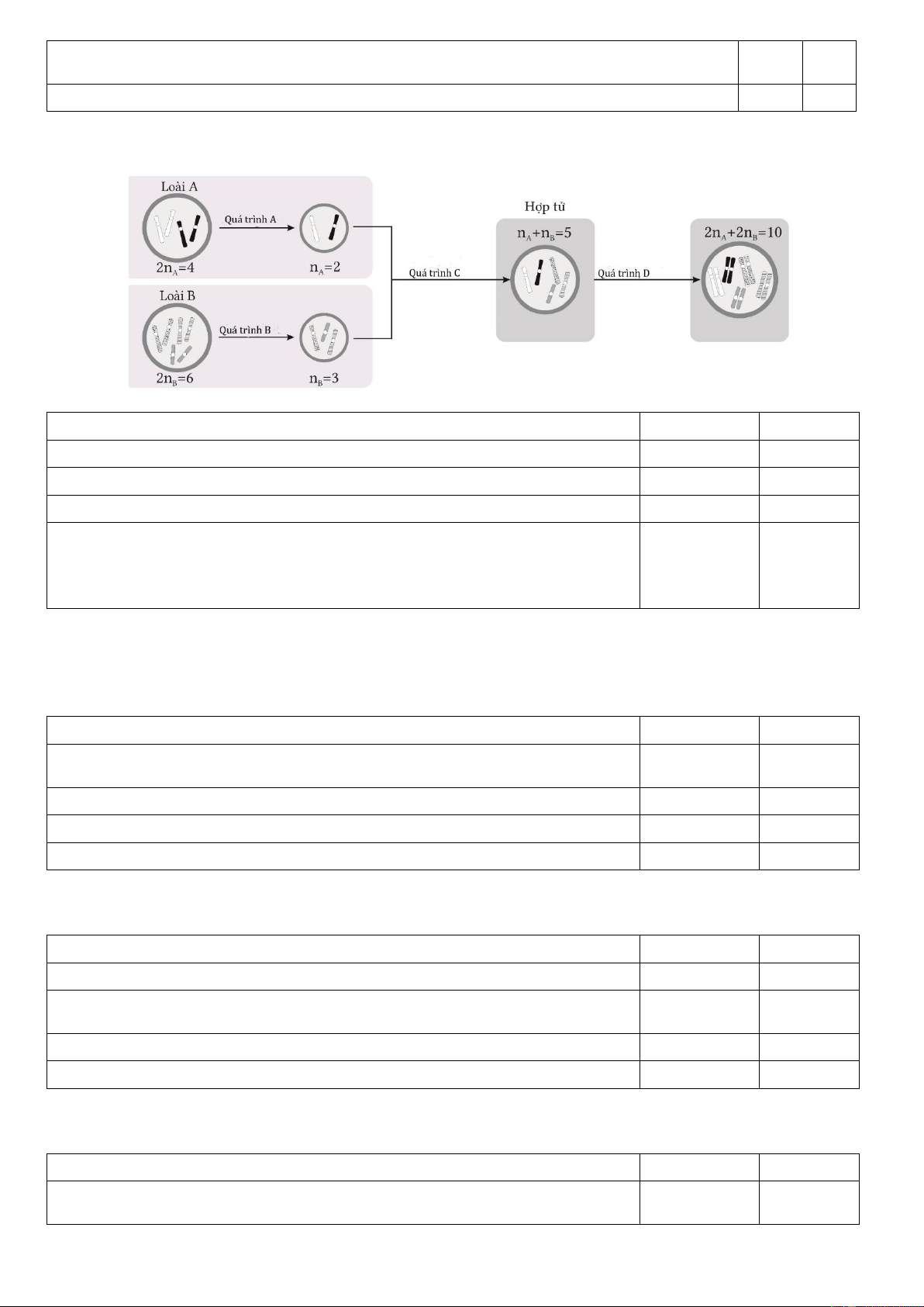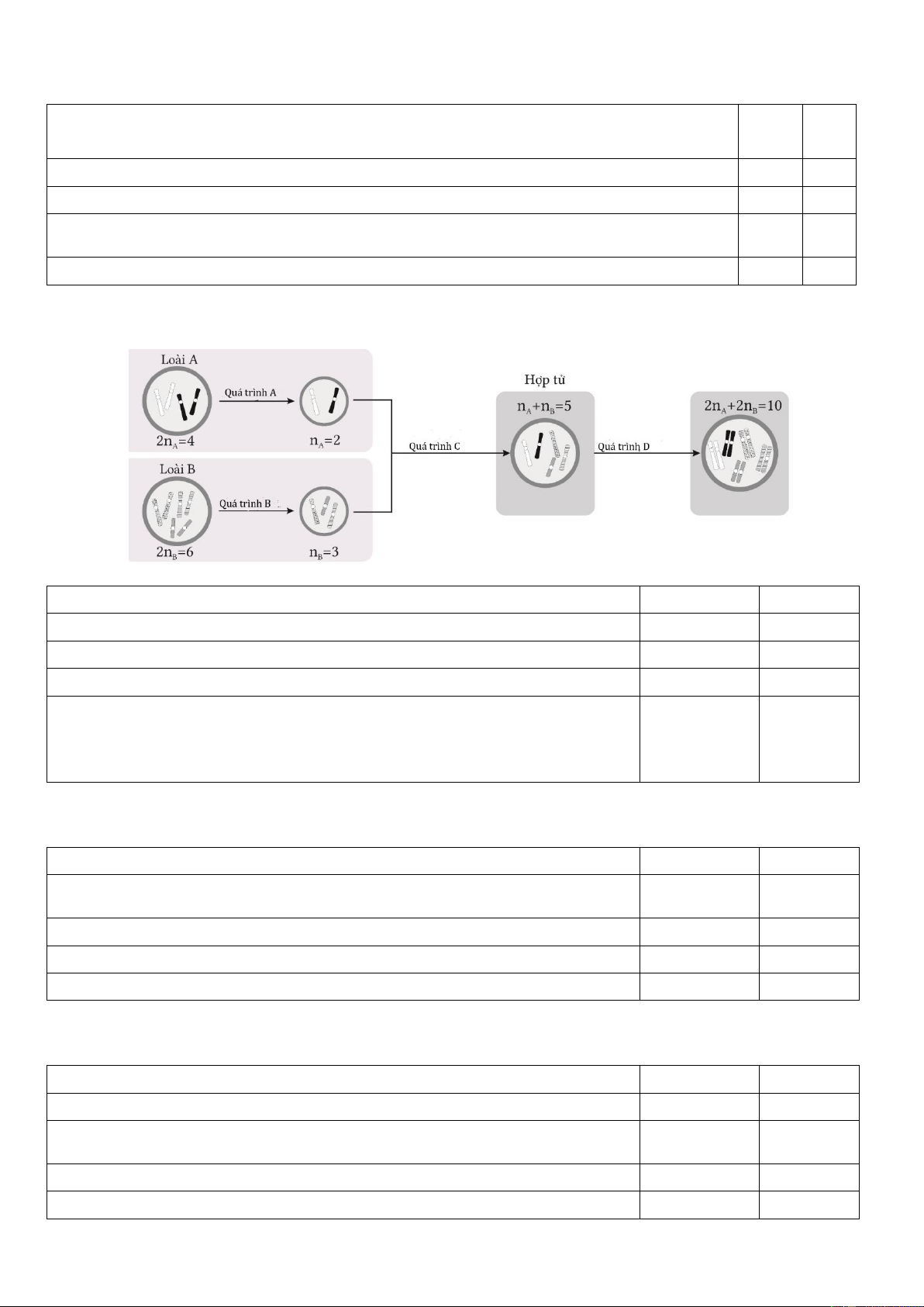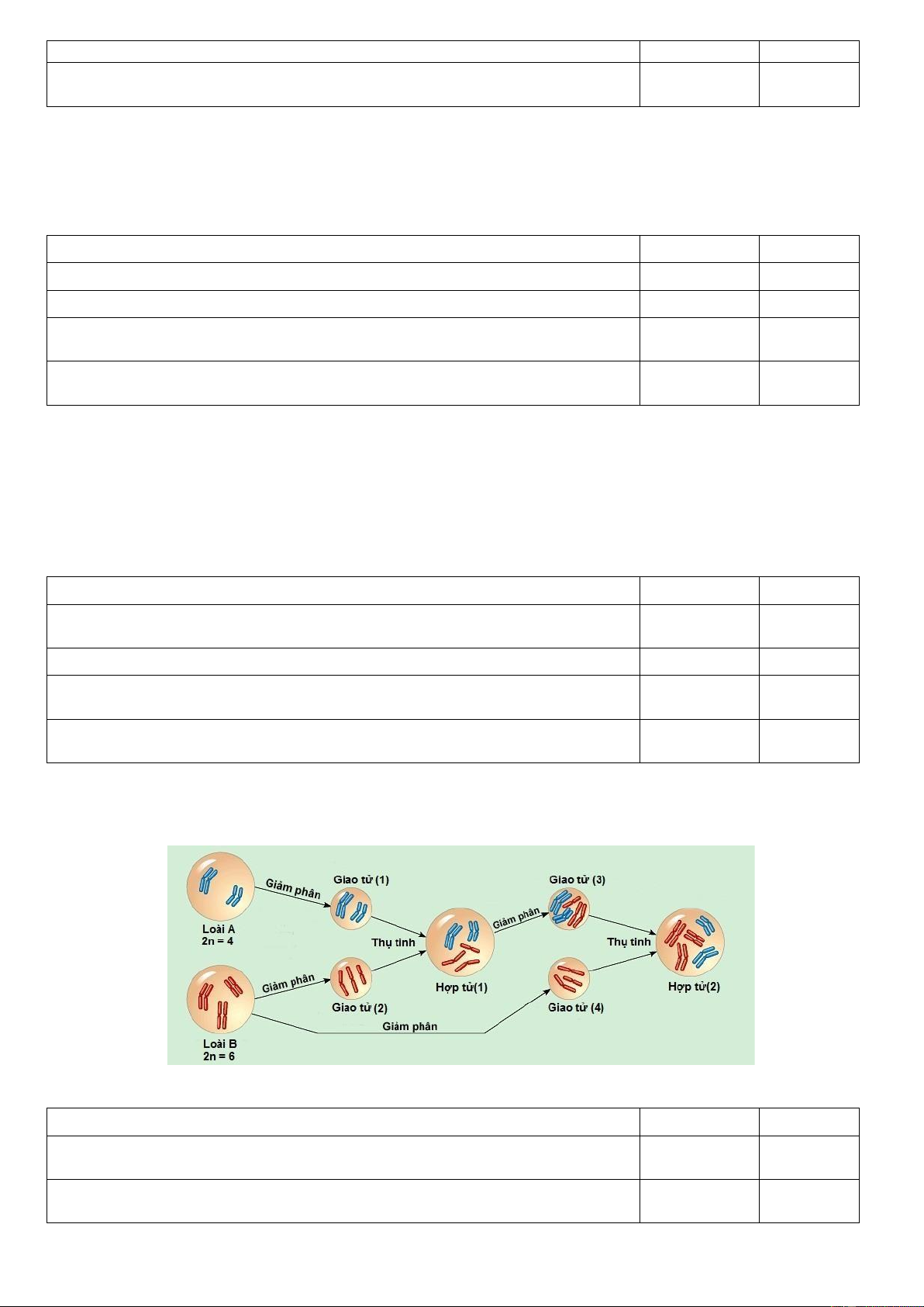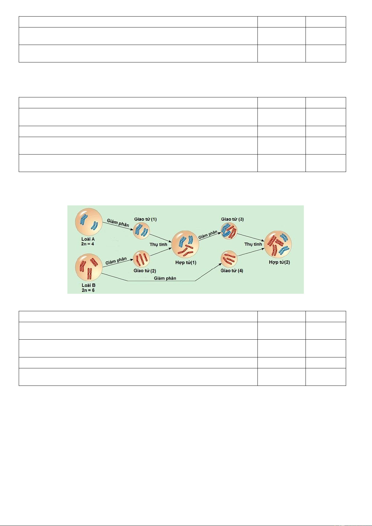 b) Quá trình giảm phân tạo giao tử (2) của cá thể thuộc loài B diễn ra bình Đ thường. Trang 11