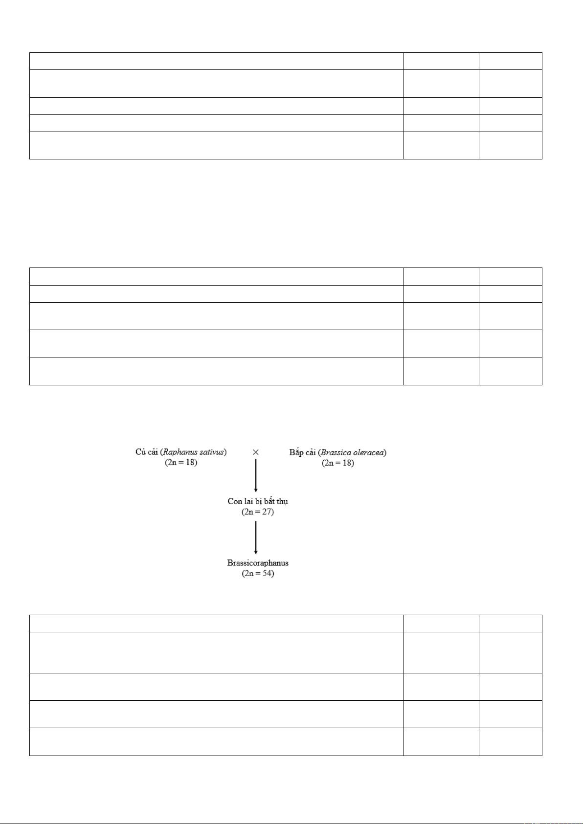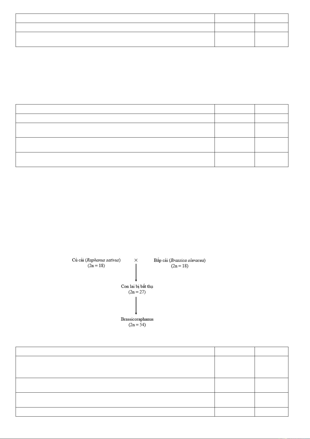 Câu 5. Năm 1928, Kapetrenco đã tiến hành lai cây cải bắp (loài Brassica 2n = 18) với cây cải củ (loài