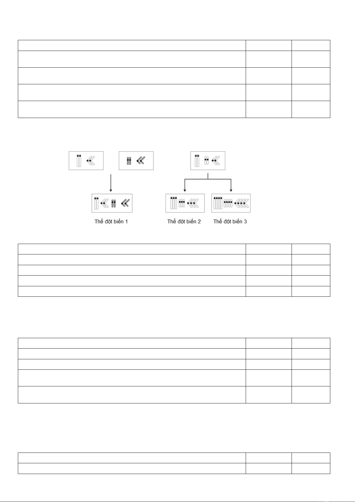 Câu 4. Một loài có 2n = 40, tế bào sinh dưỡng của một thể đột biến có 100 nhiễm sắc thể và gồm 20 nhóm,