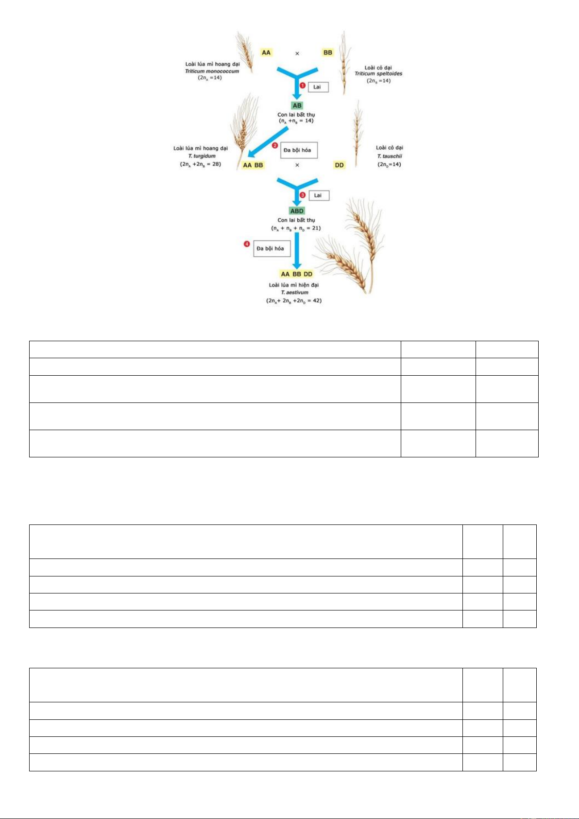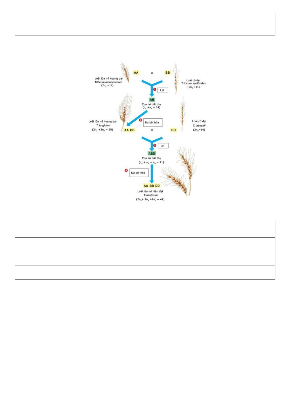 Câu 11. Quá trình hình thành loài lúa mì (T. aestivum) được các nhà khoa học mô tả như sau: Loài lúa mì