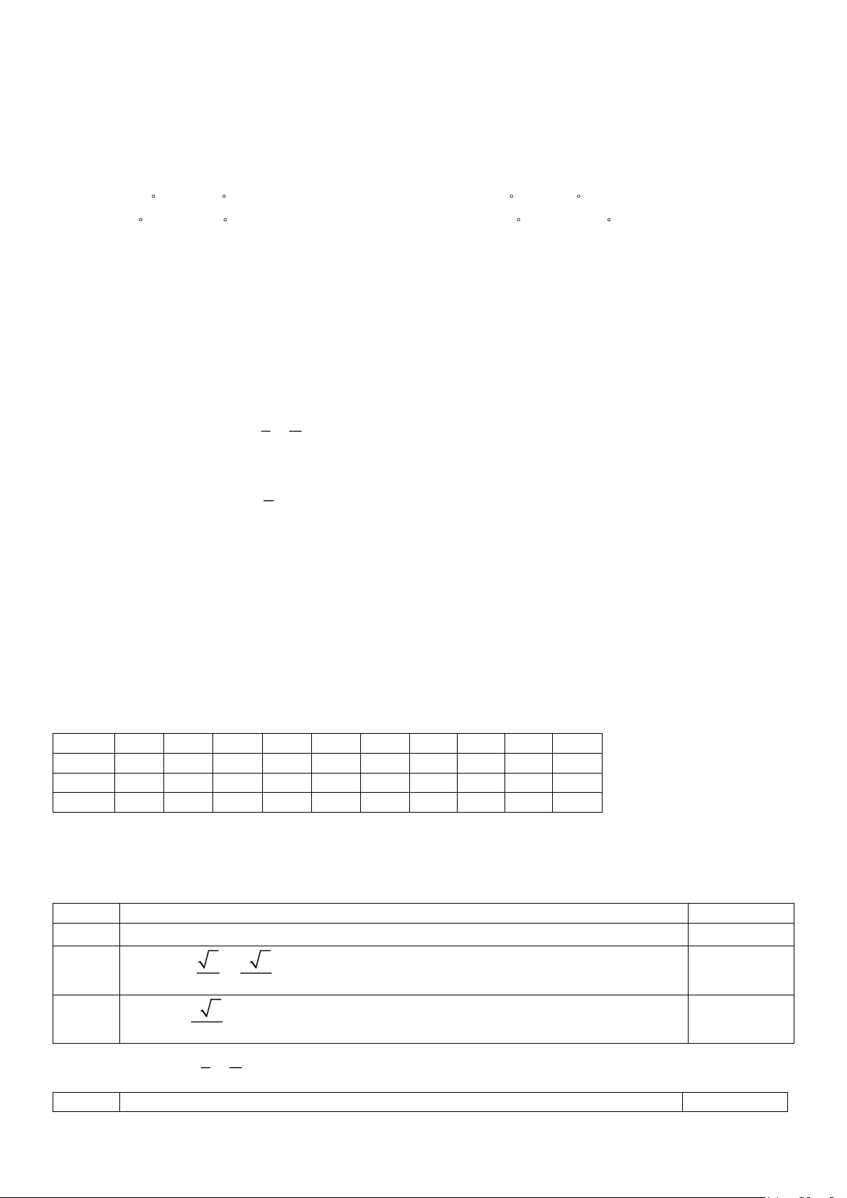 Phần I. Câu trắc nghiệm nhiều phương án lực chọn. (Mỗi câu học sinh được 0,3 điểm ) Câu 1 2 3 4 5 6 7 8 9 10 Chọn A A D D C D A B B B Câu 11 12 13 14 15 16 17 18 19 20 Chọn A C D D D A C B D C