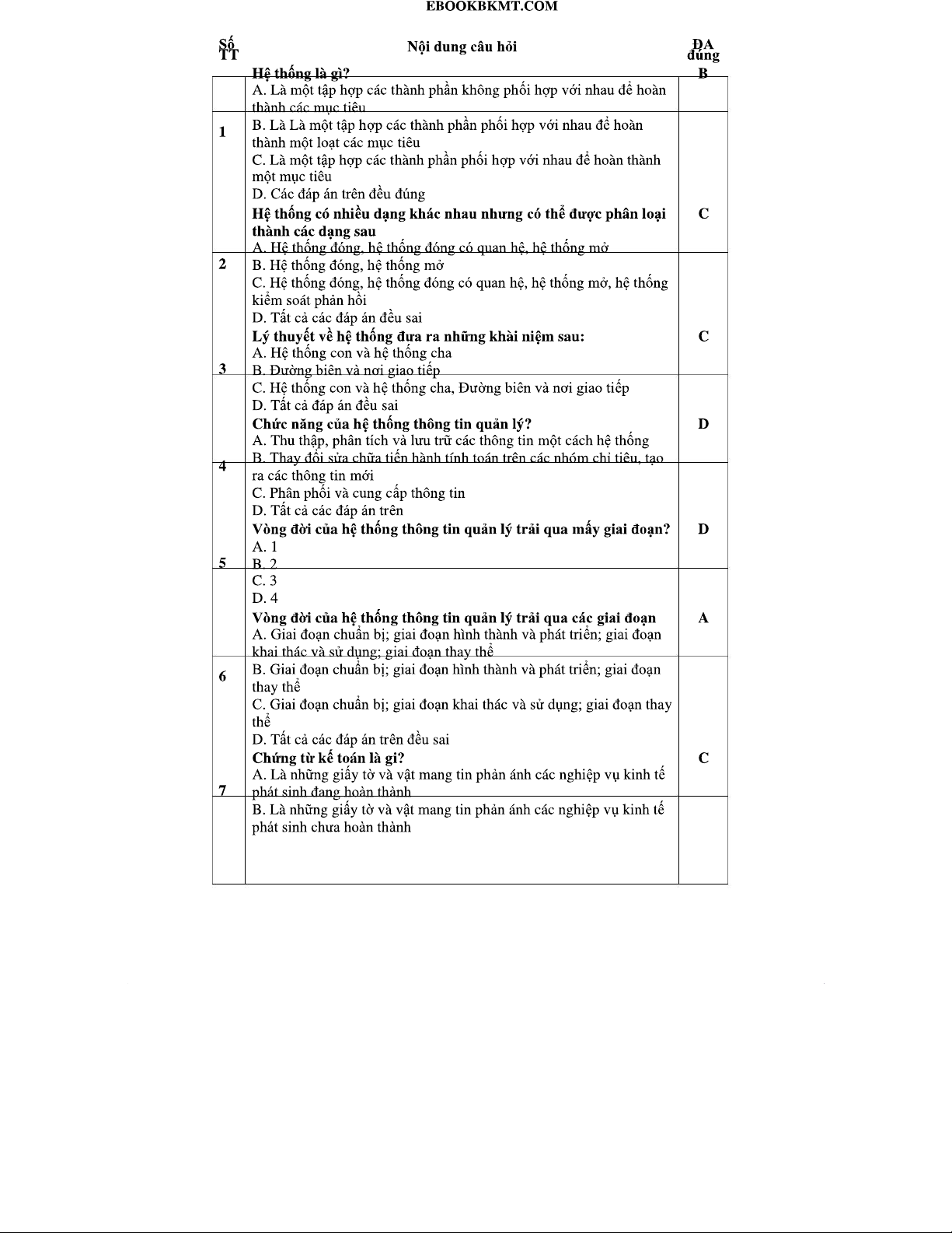 200 Câu Hỏi Trắc Nghiệm Hệ Thống Thông Tin Kế Toán (Đáp Án Có Sẵn)