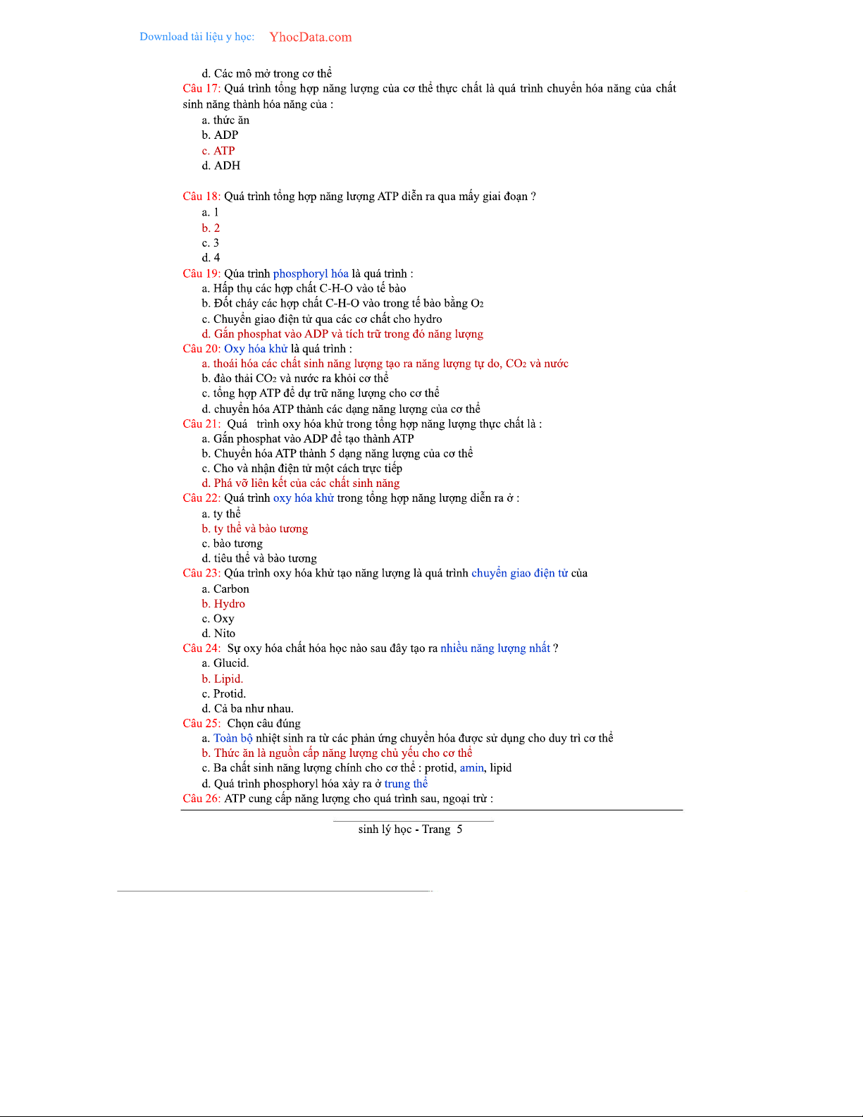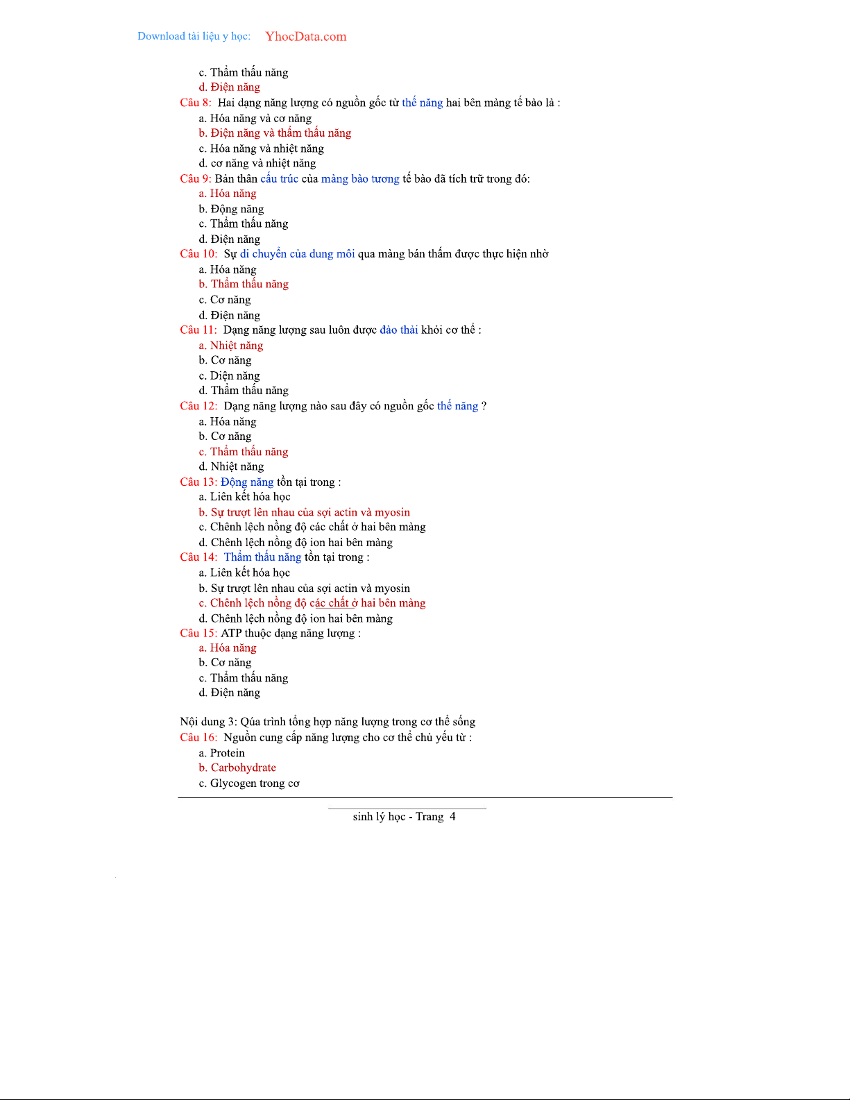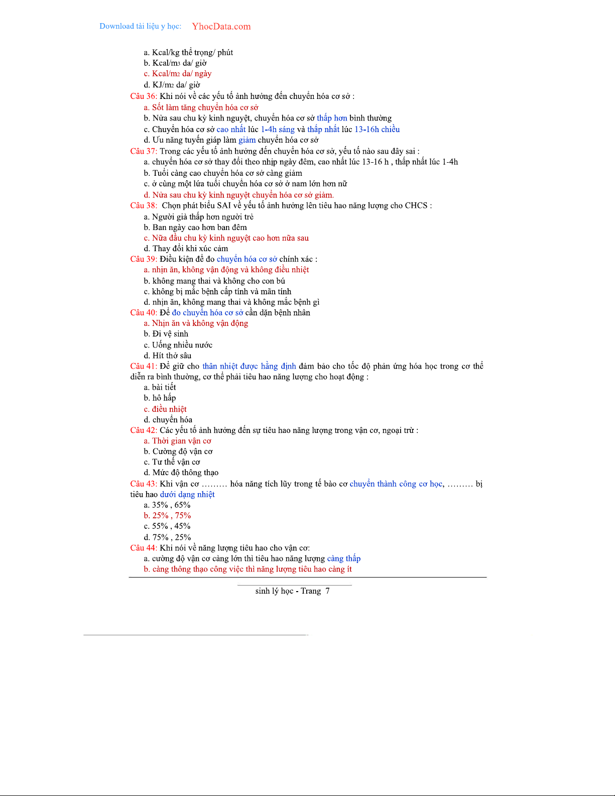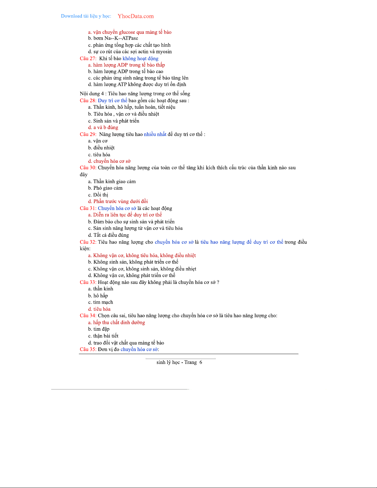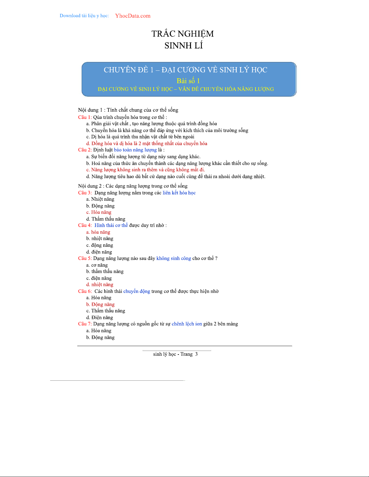 2000 Câu Trắc Nghiệm Sinh Lý Học - Tài Liệu Ôn Tập Chương Trình 2023