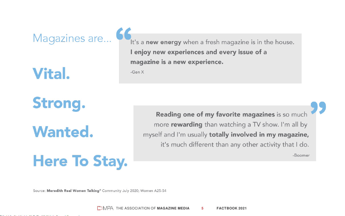 This edition of MPA’s Factbook highlights the resiliency of magazine media in the midst of a global pandemic, and the