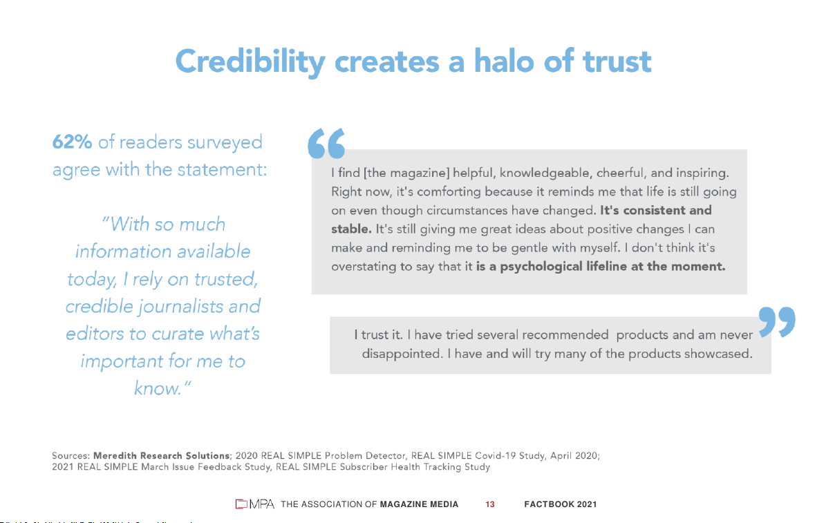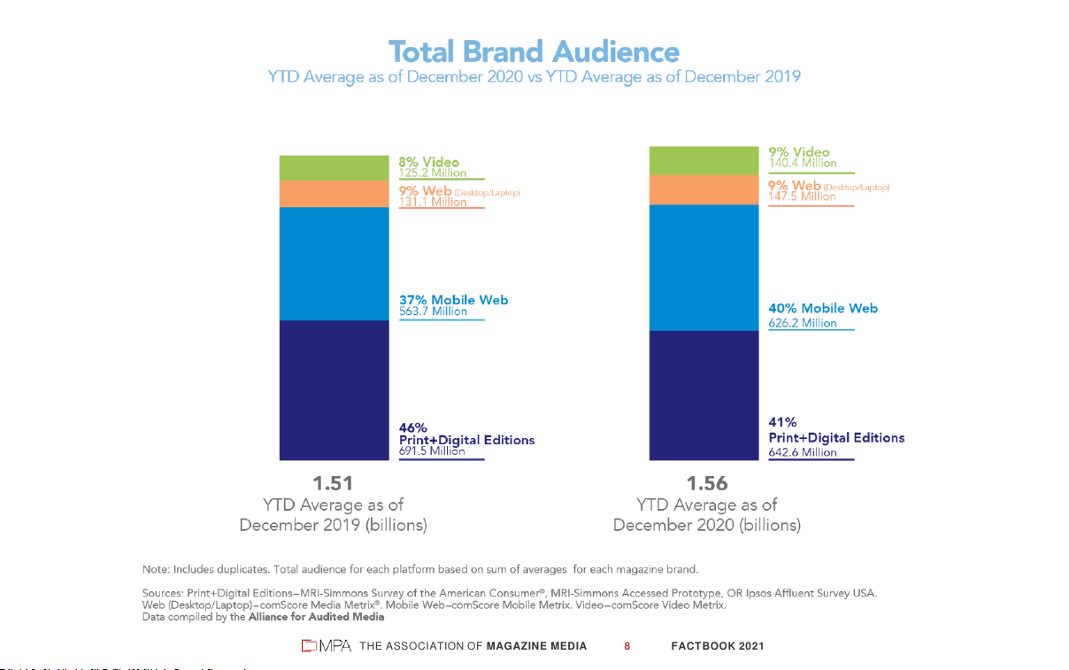 high level of trust consumers continue to place in magazine media platforms. Overall audience across print, digital, and