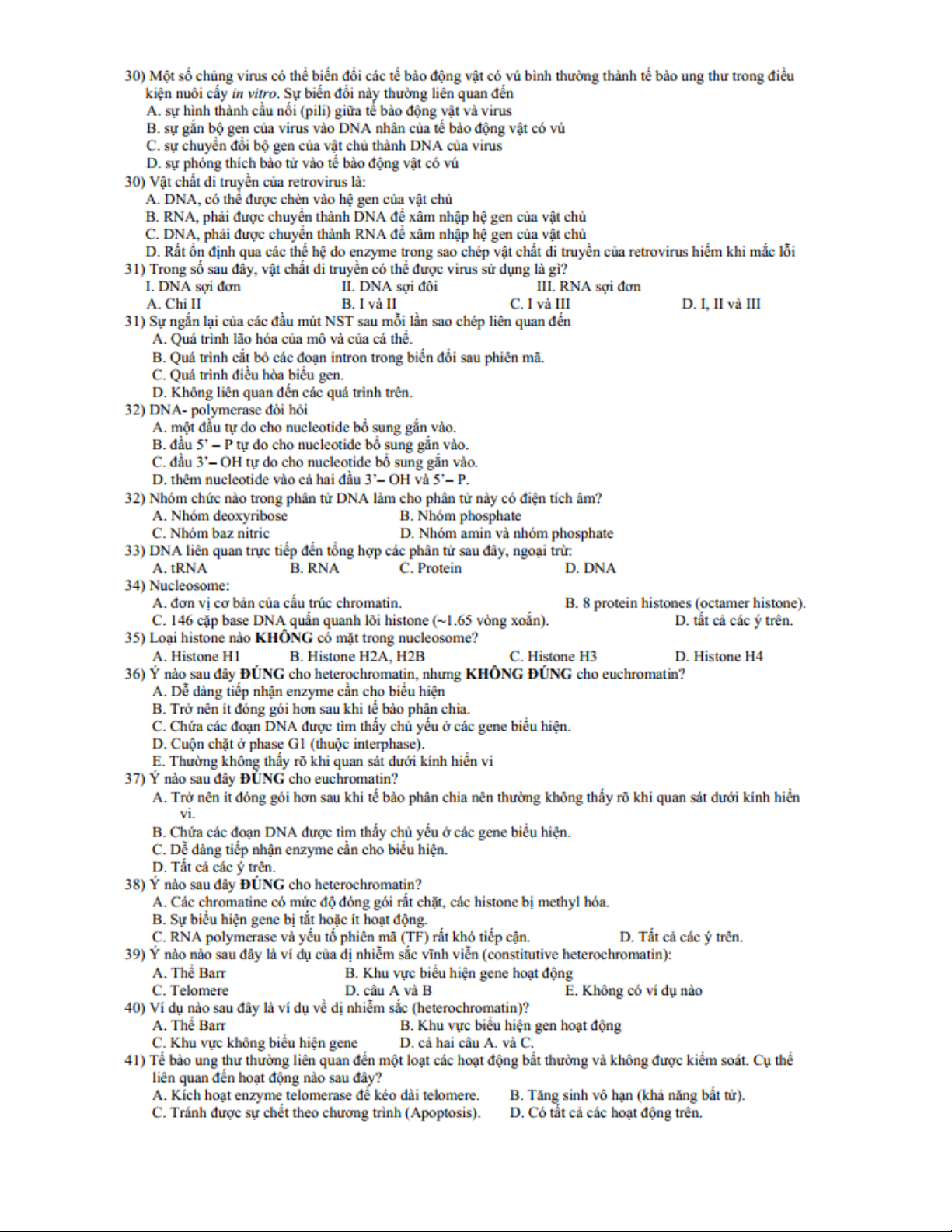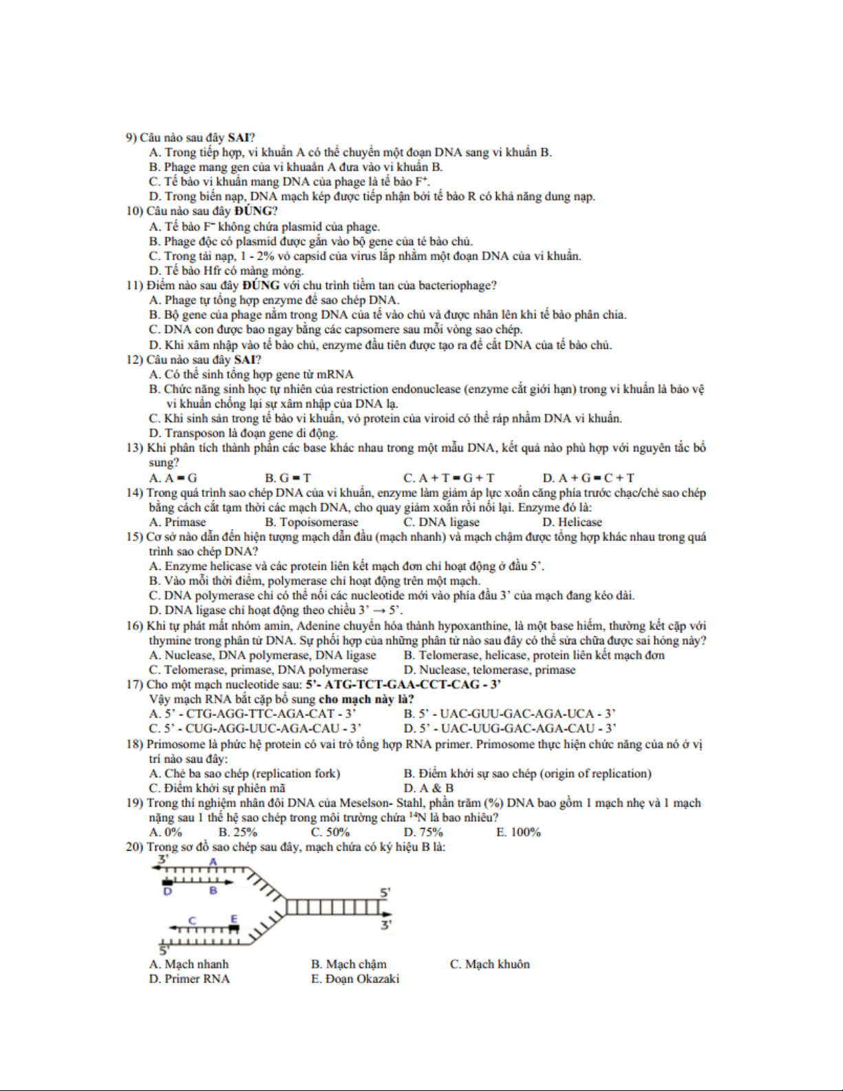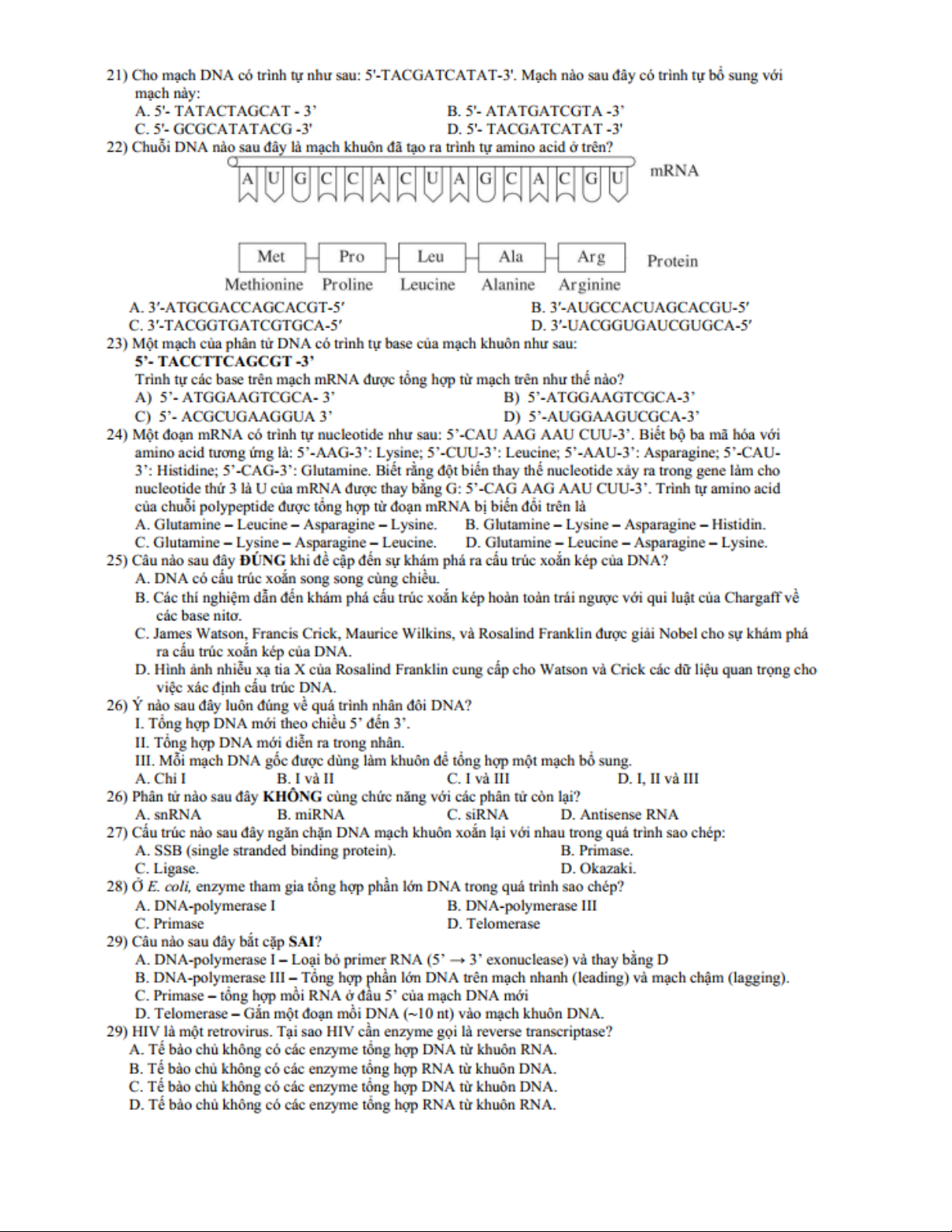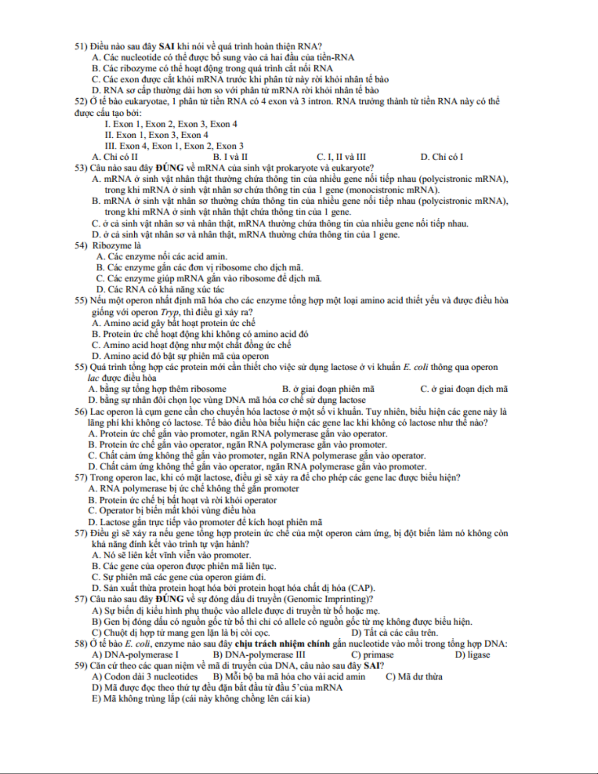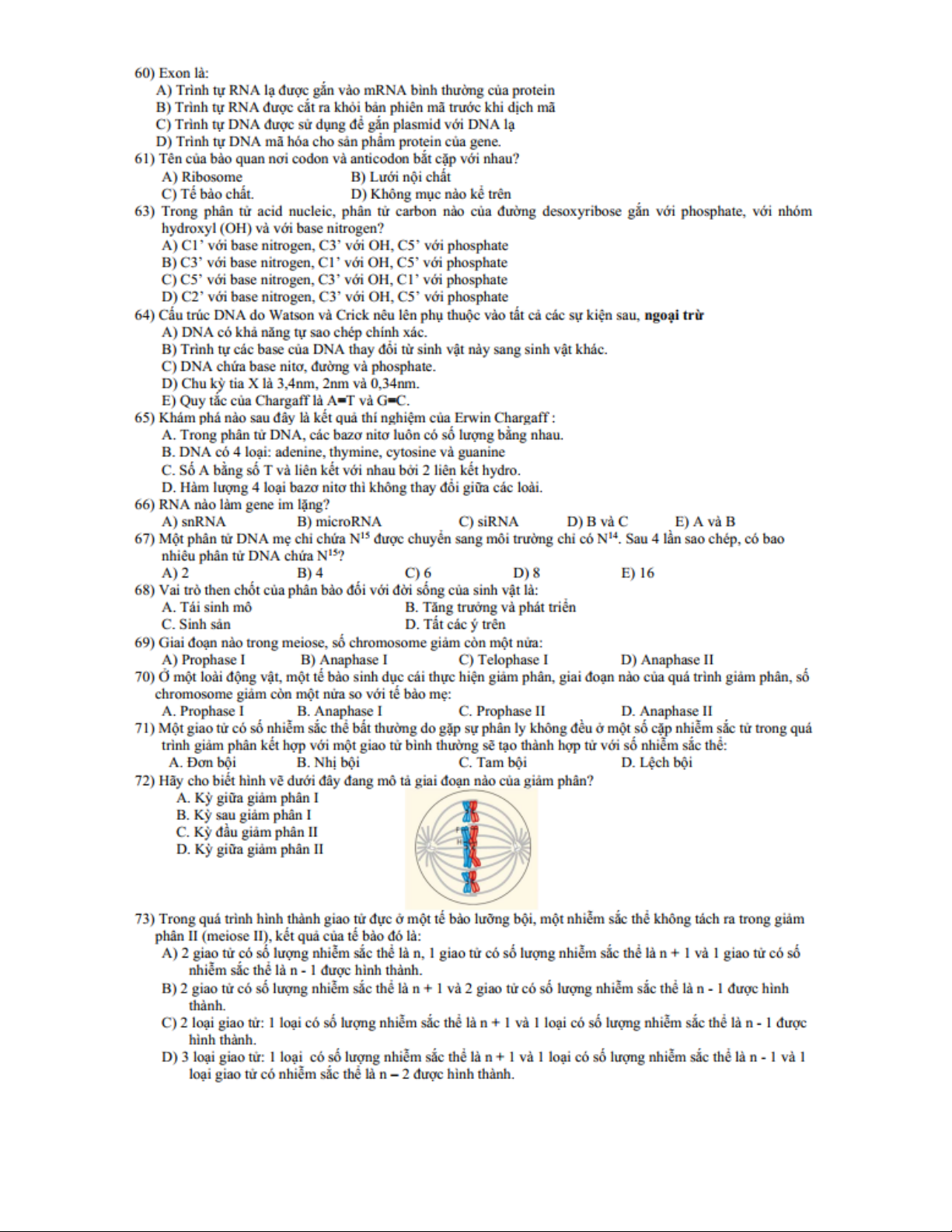Ngân hàng bài tập trắc nghiệm sinh học - phần di truyền học - cơ chế di truyền và biến dị | Trường Đại học Nam Cần Thơ