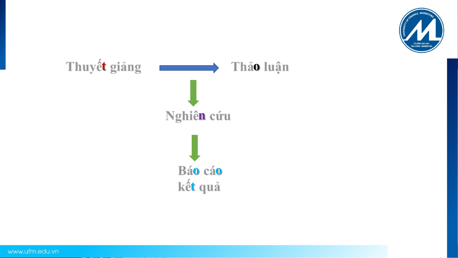 Phương pháp dạy – học Thuyết giảng Thảo luận Nghiên cứu Báo cáo kết quả