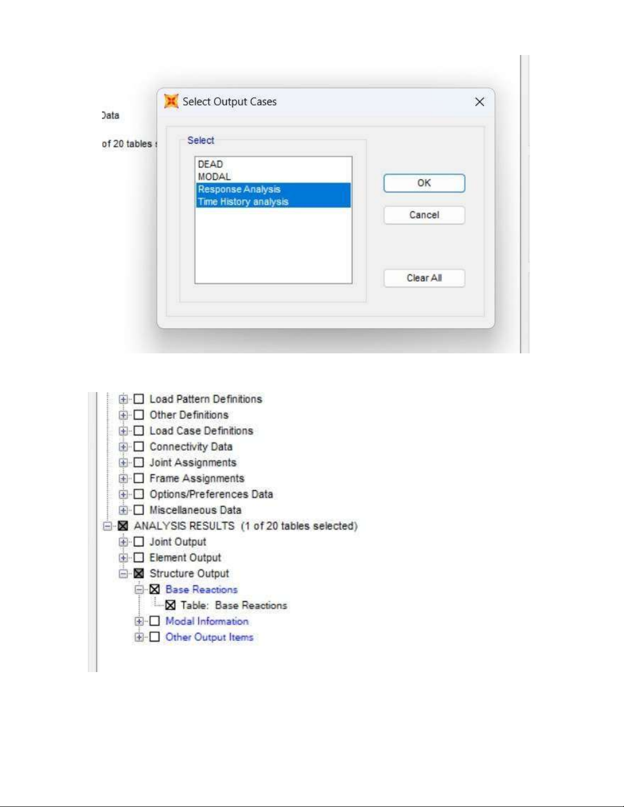 Lựa chọn kết quả phân tích: ở đây xem xét lực cắt đáy tác động lên công trình