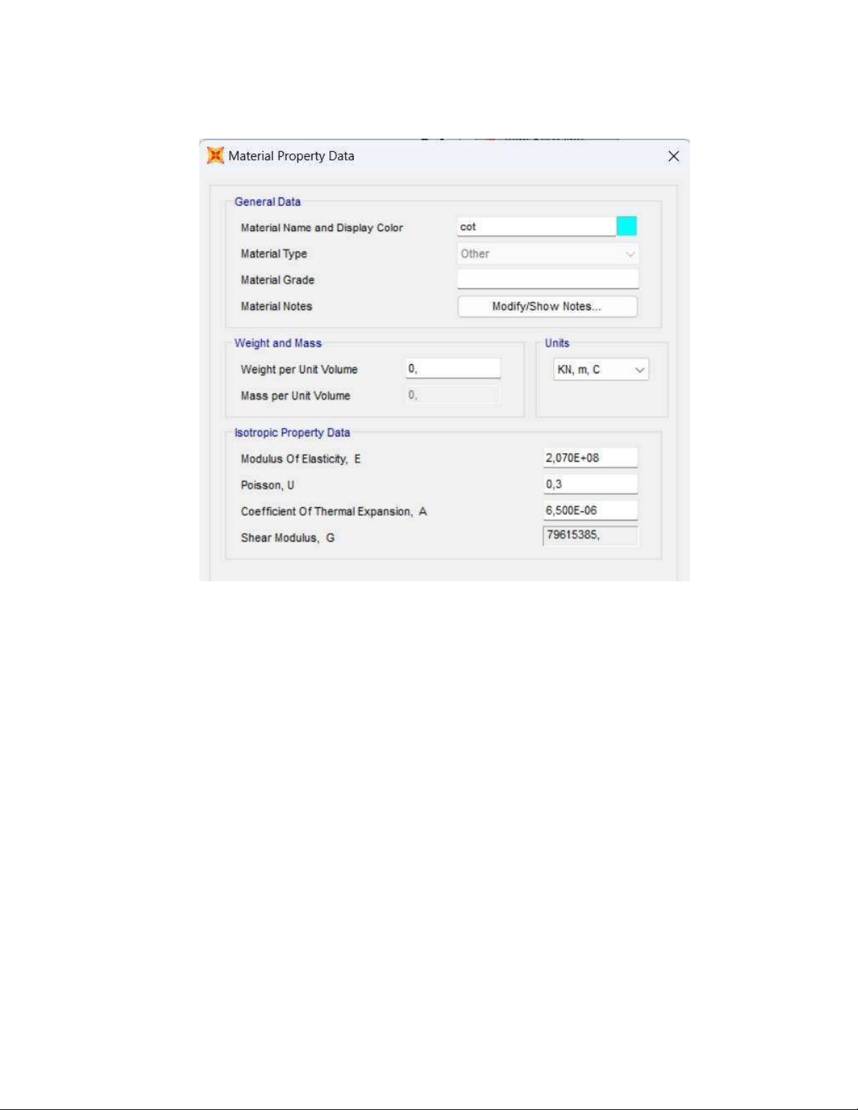 + Thông số cho vật liệu thanh như sau (loại vật liệu user) *