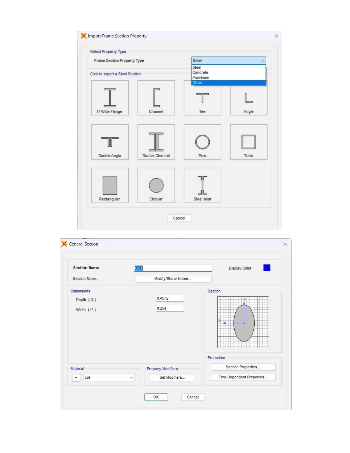 Lựa chọn section propeties để định nghĩa các thông số (tiết diện ngang