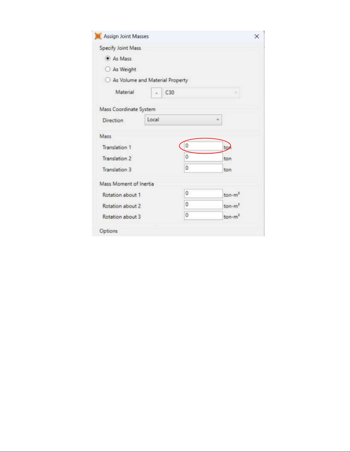 Do khối lượng tập chung tại các nút nên vật liệu thanh được định nghĩa có khối lượng bằng 0.