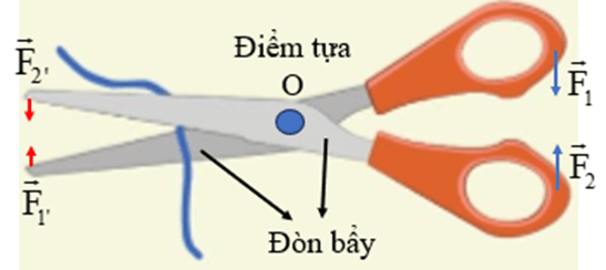 Câu 2 (1,0 điểm) | - Đòn bẩy: cán và lưỡi kéo. - Điểm tựa: trục xoay. - Sự thay đổi hướng: lực tác dụng vào cán kéo có phương thẳng đứng chiều hướng xuống dưới thay đổi thành lực có phương thẳng đứng chiều hướng lên trên ở phía lưỡi kéo. ![]() | 0,25 điểm 0,25 điểm 0,5 điểm |