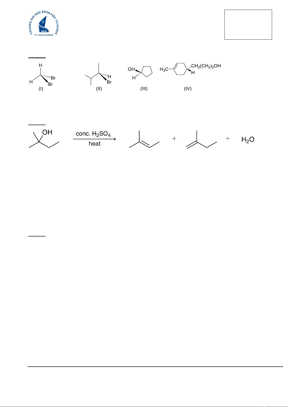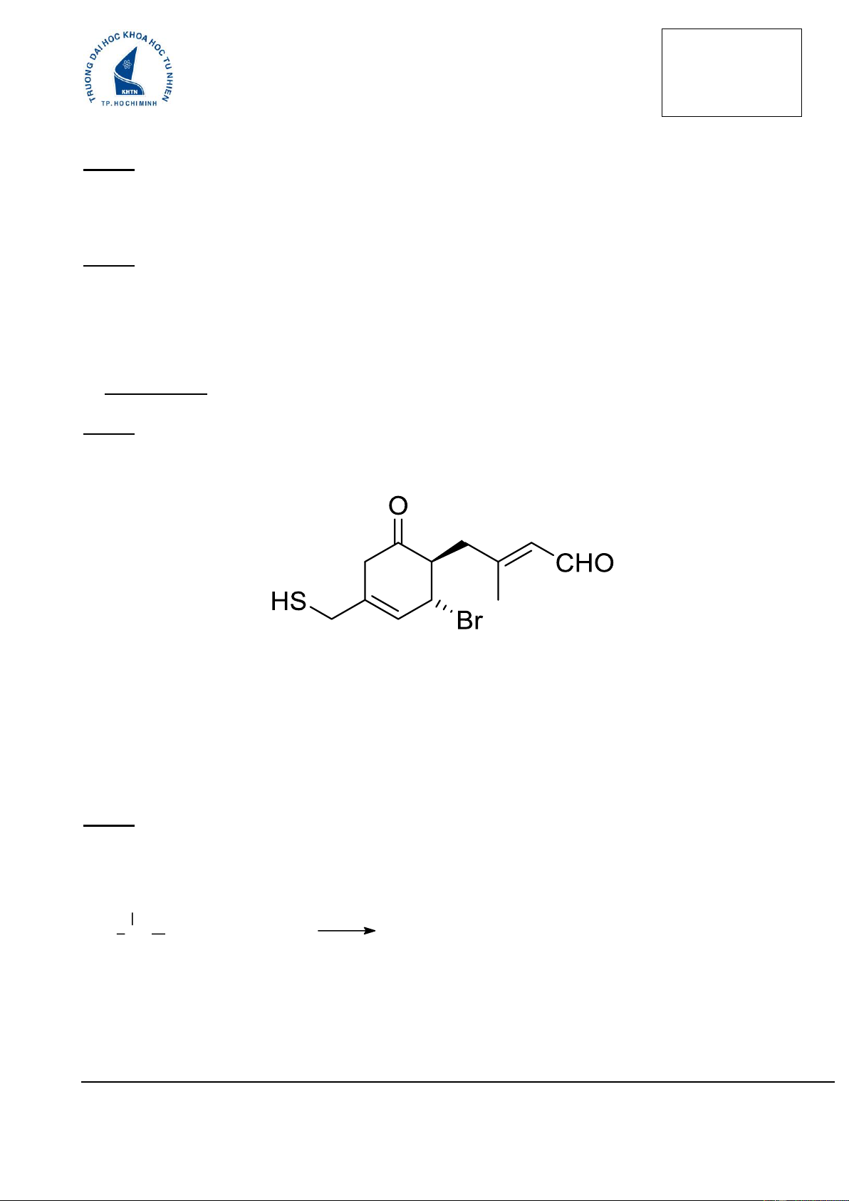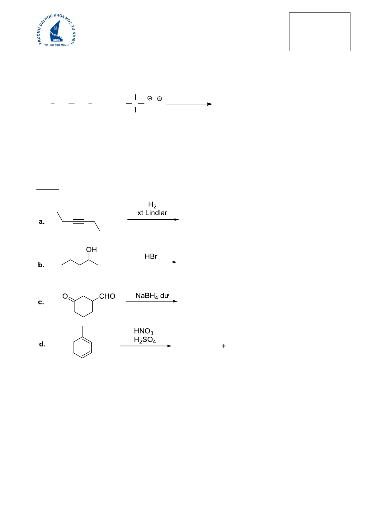 Câu 3. (2,0 đ) Viết sản phẩm chính cho các phản ứng sau (Đề thi gồm 4 trang)