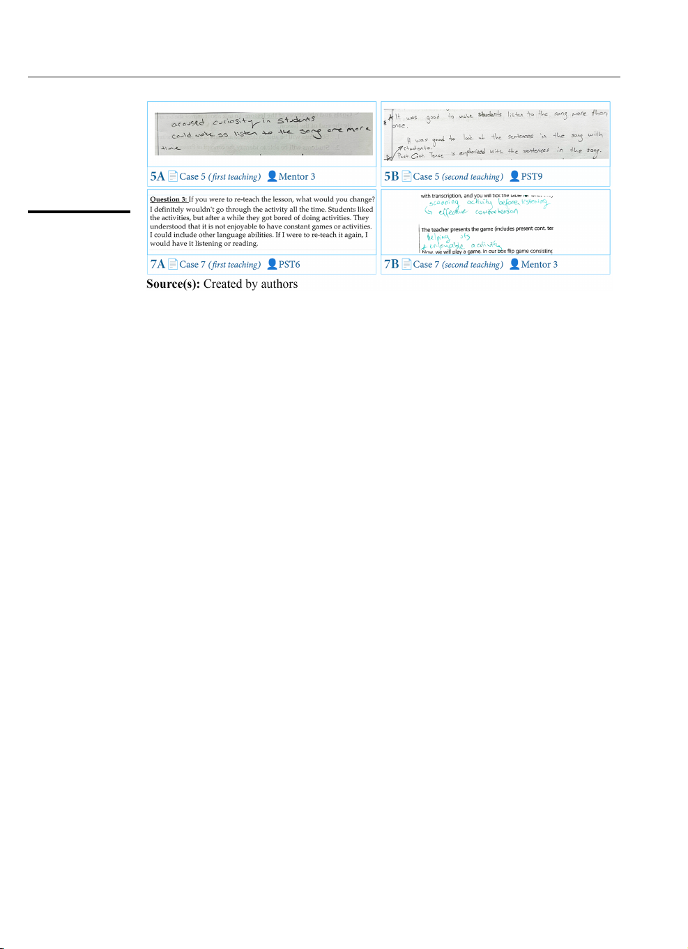 dynamics than in-service teaching practices (Cajkler and Wood, 2015; Gurl, 2011; Larssen